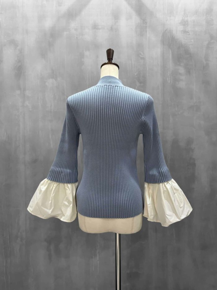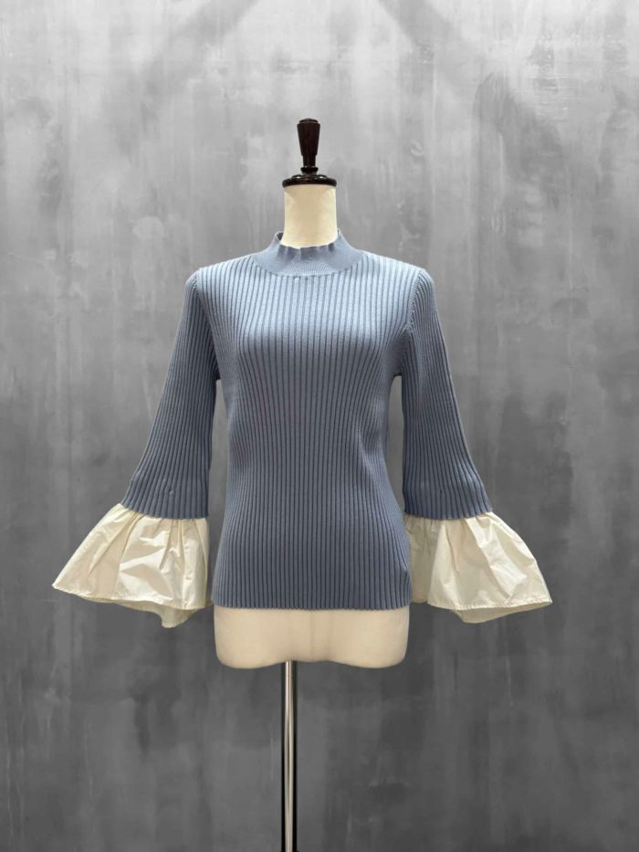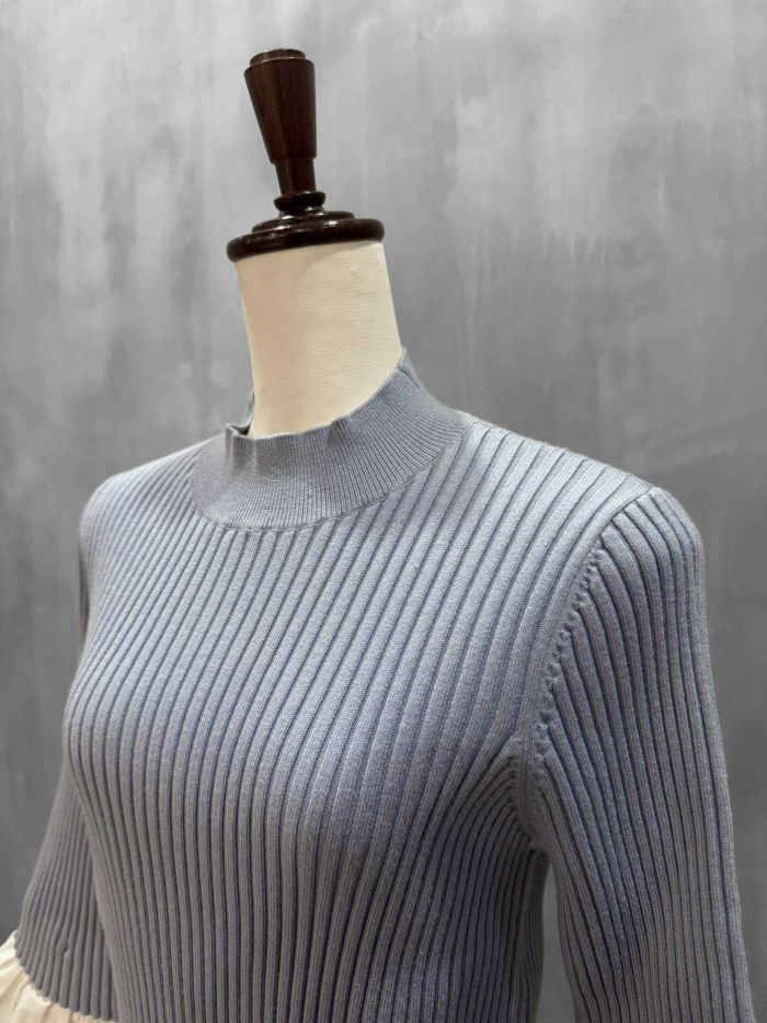 毛羽のないハイゲージのリブ編みは身体のラインを拾いすぎず、しっかりとした肉感でインナーの透けを気にすることななく一枚で安心して着用できるトップスニットです。
