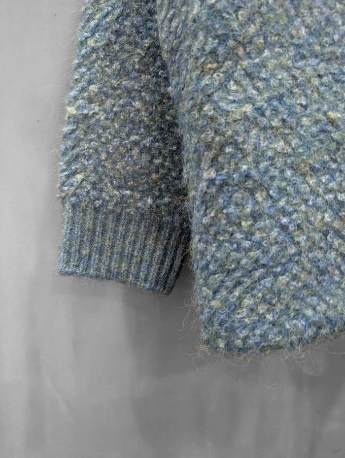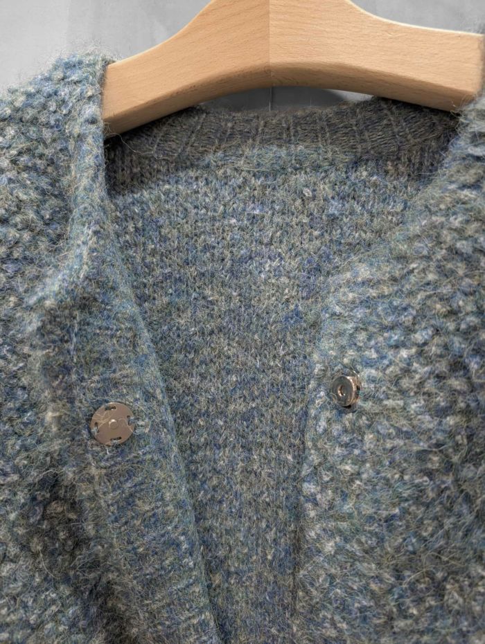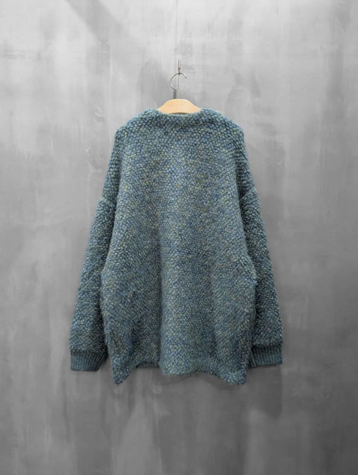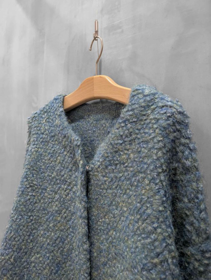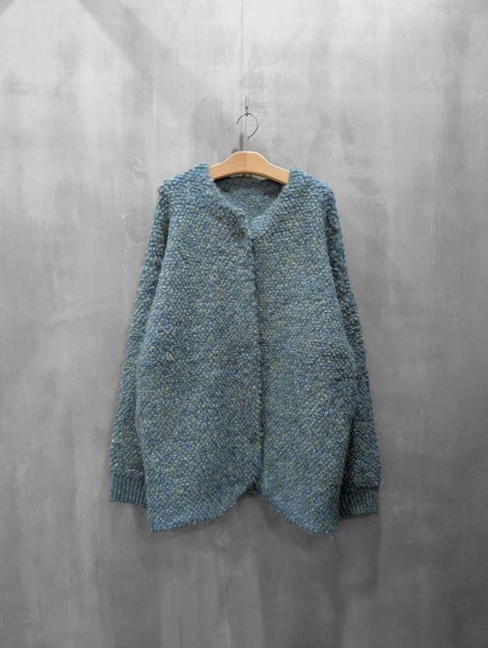 まるでアート色彩のようなあたたかみある彩りを添えるモザイク風のニットカーディガン。様々な色の繊維が混じりあったミックスカラーの糸で編み上げられたニットは、まるでモザイク画のような奥行ある表情が魅力。冬らしい素材感でスタイルに季節感をもたらします。ゆったりとしたオーバーシルエットは身体のラインを拾わず程よい抜け感を演出。羽織るだけで主役になる存在感がありながら、様々なスタイルにフィットする汎用性の高さも魅力。パンツスタイルに合わせれば洗練された大人カジュアルに、ワンピースやスカートに羽織れば、優しさと個性を兼ね備えたフェミニンスタイルが完成します。