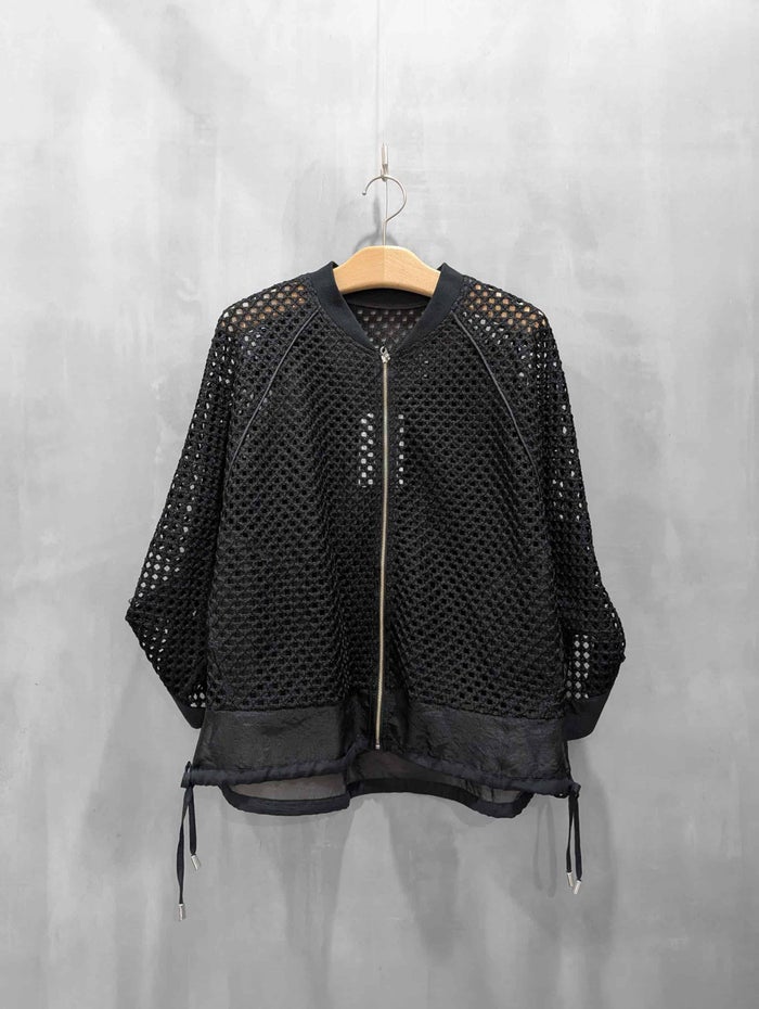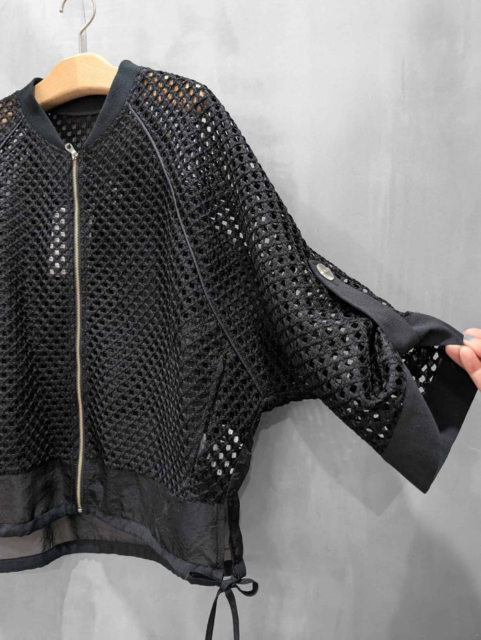 夏にぴったりな、通気性抜群のアイコニックなメッシュネットブルゾン。ラリア・ムーらしい、軽やかで、フェミニンな印象。軽快なスポーティさがトレンドライクなムードで、羽織るだけでスタイルにこなれ感を持たせてくれます。袖口を大きく設計し、腕周りにゆとりと抜け感を持たせ、付属のタブを使ってロールアップが可能。手首を見せて抜け感を演出できます。裾にオーガンジーをドッキングすることで、涼やかな透けを表現し、視線UP効果で小柄な方もバランスよく着用いただけます。(※デリケート素材のため引っ掛け注意)
