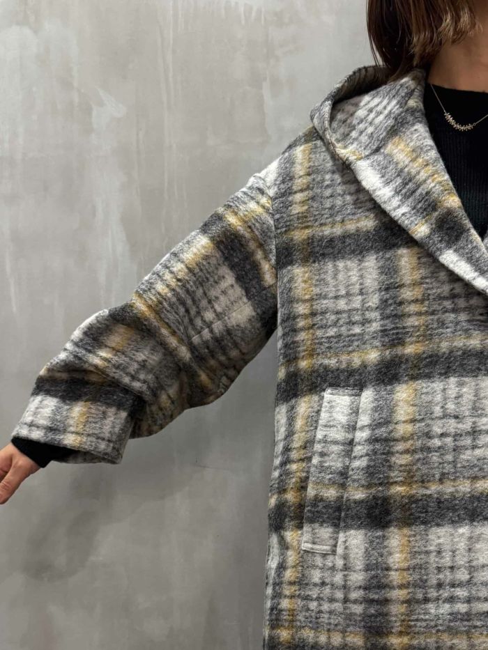 ふんわりとファンシーなチェック柄が品の良さの中に遊び心を感じるセミロングコート。