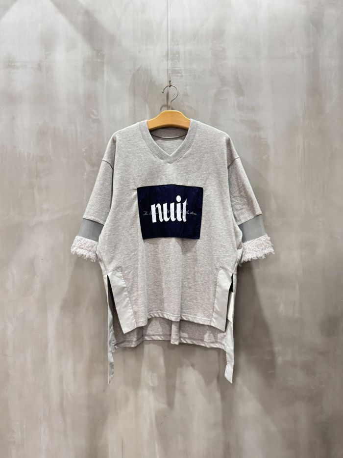 Lallia Mu ジャガードドッキングスリーブオーバーTシャツ
