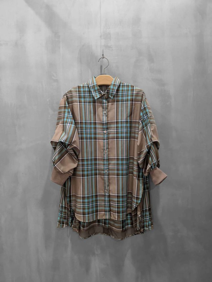 ラリアムーの代名詞でもあるプリーツをドッキングしたシャツシリーズ。