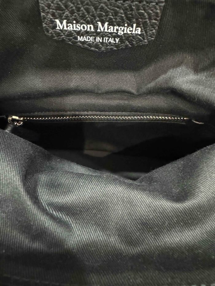 内部は、メゾンの哲学「ライニングの匿名性」を体現した構造があえて見える仕様となっており、マルジェラならではのコンセプチュアルな美しさが感じられます。実用性にも優れ、取り外し・調整可能なストラップ付きでハンド・ショルダー・クロスボディの3WAYで使用可能。