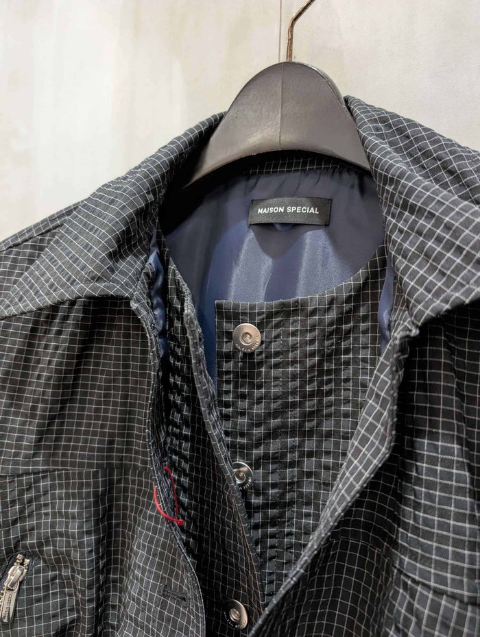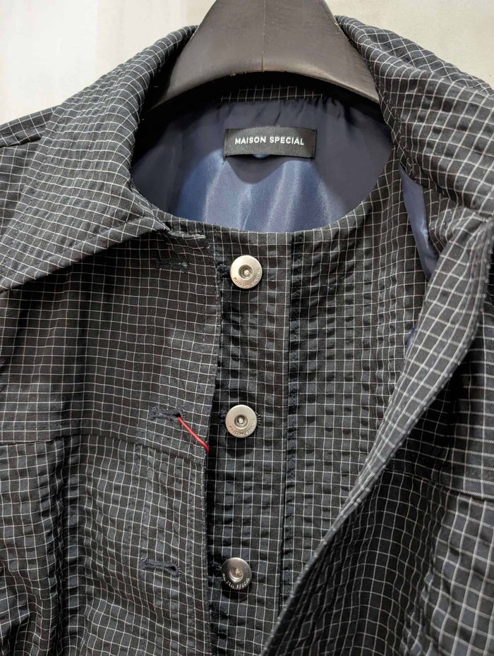 チェック柄のタフタ素材を使用したショートブルゾン。