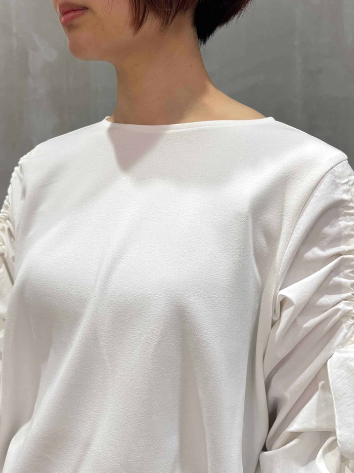 袖にたっぷり寄せたフリルギャザーが華やかに揺れるプルオーバーブラウス。