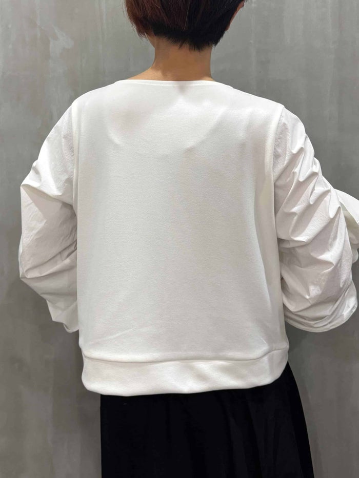 フェミニンなボリューム袖が特徴のプルオーバーブラウス