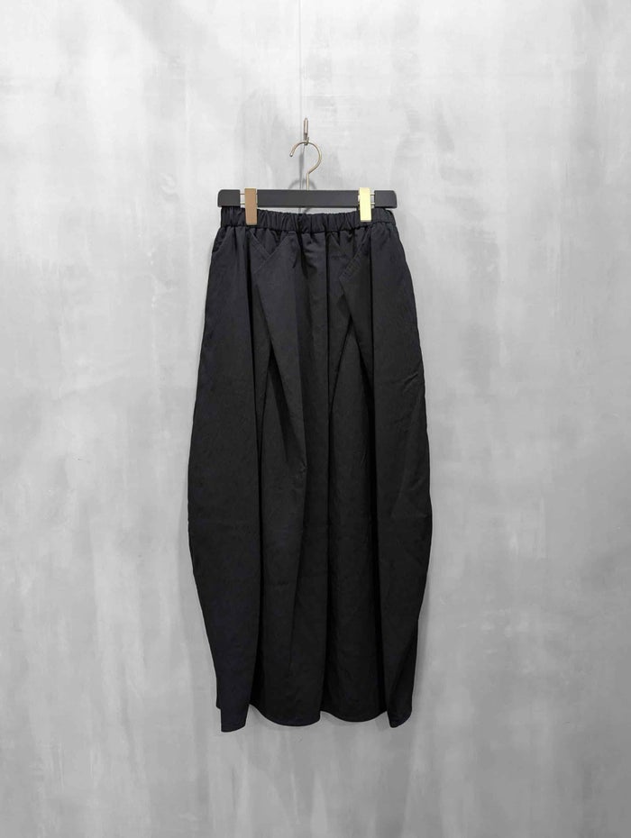 たっぷりとした分量感の上品なボリュームのコクーンタックスカート