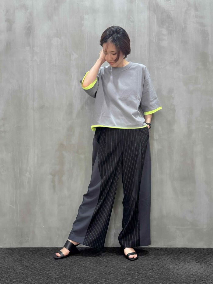 モード感とリラクシーな着心地を両立した、大人のためのバイカラーパンツ。シンプルなトップスと合わせるだけで、こなれ感のあるスタイリングが決まります。