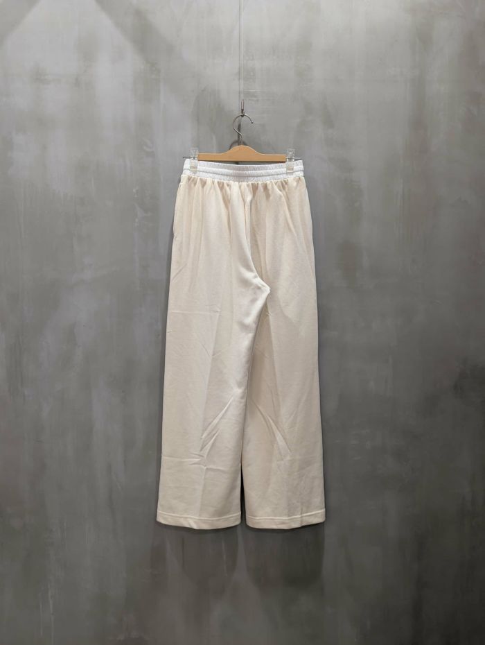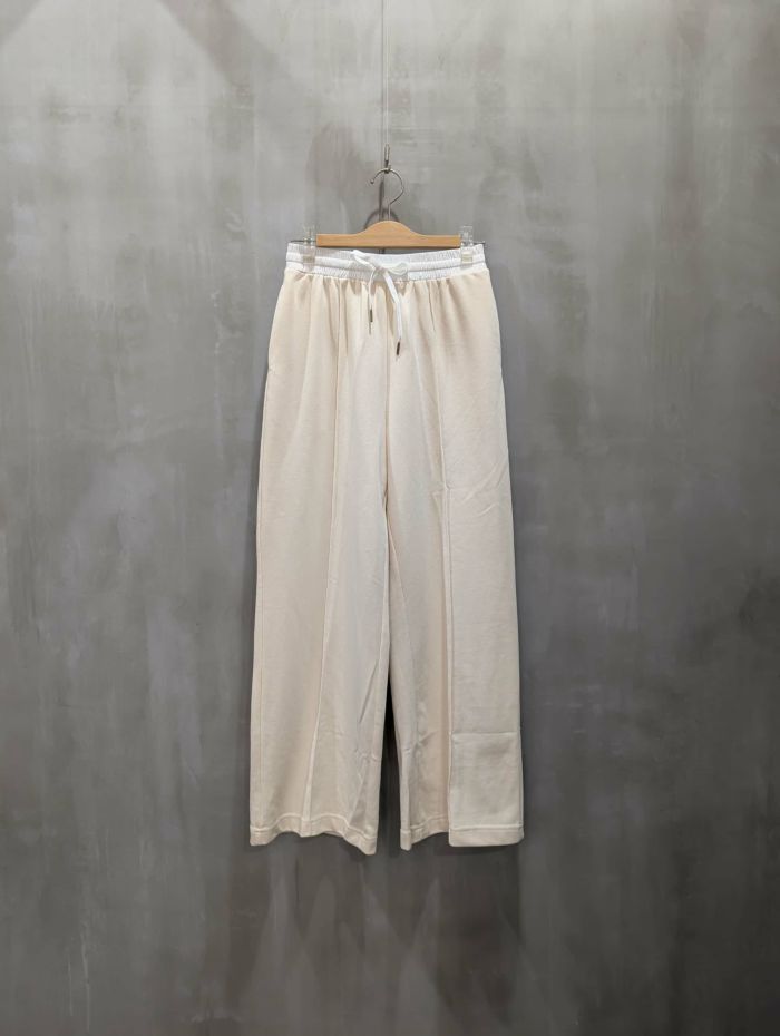 スウェットならではの快適な穿き心地に、センターピンタックとウエストの異素材切り替えをプラスした、大人にふさわしい上品な一本。カジュアルになりがちなスウェット素材も、縦のラインを強調するピンタックデザインによってすっきりと美脚見えを叶え、ラフさときちんと感を兼ね備えています。