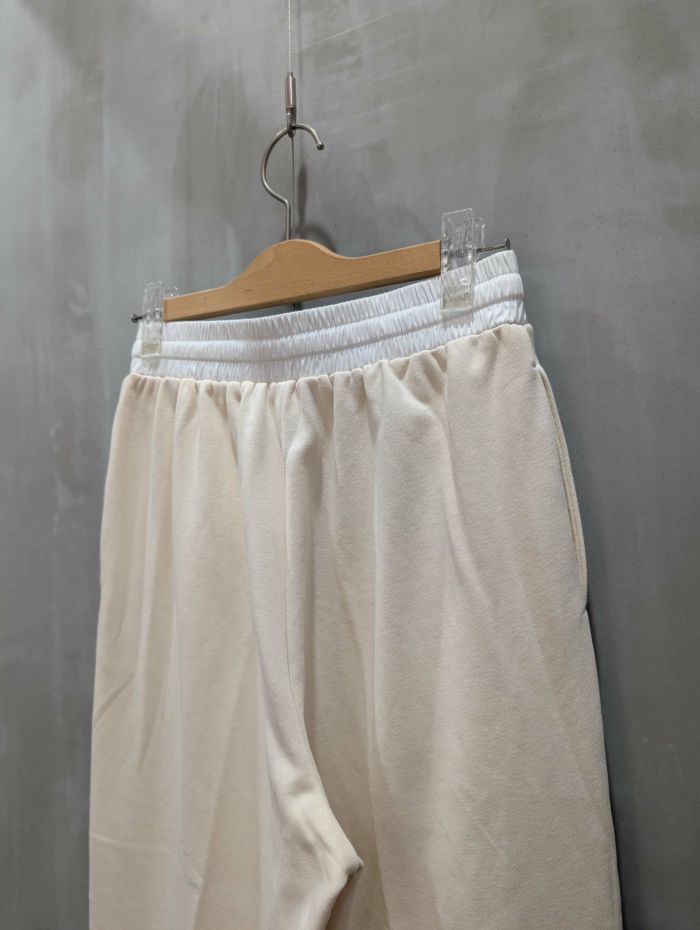 型崩れしにくいしっかりとした裏毛素材を使用しており、デイリーに活躍しながら長く愛用できるのも嬉しいポイント。ウエスト部分は異素材で切り替えられているため、トップスをインした着こなしでもスタイルアップが叶います。