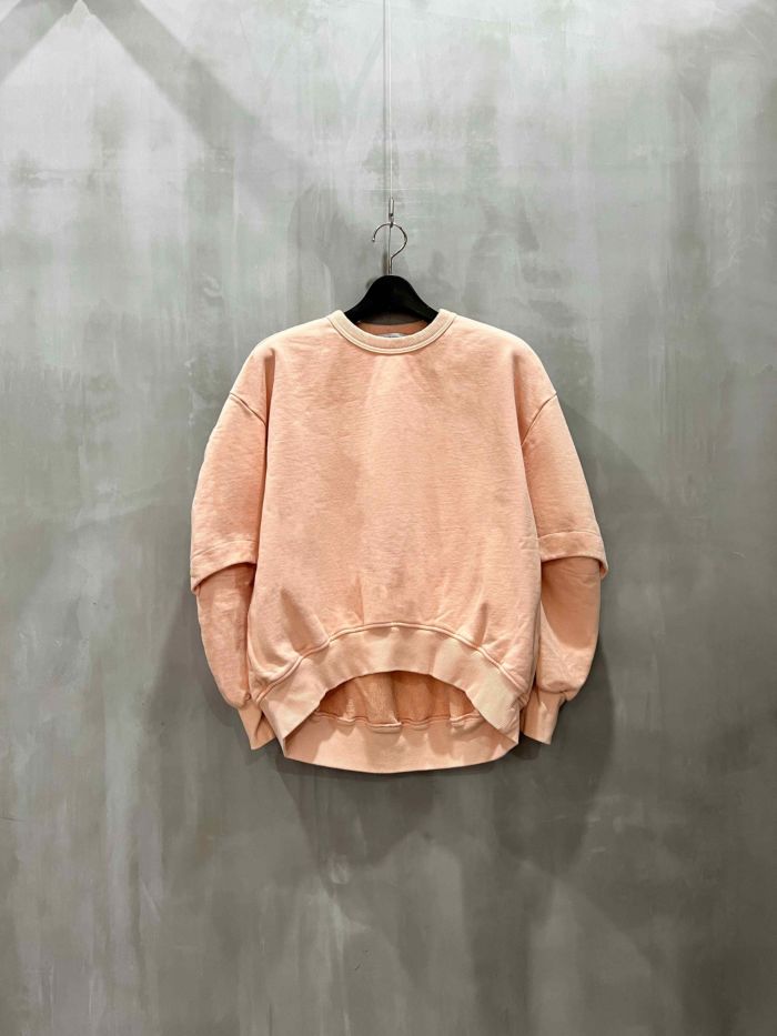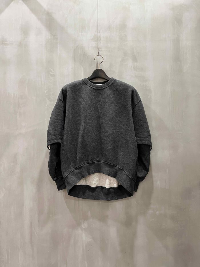 前袖にスラッシュがあり、そこから手を出し着こなしを楽しむことができます。春の軽やかさを演出し木尾梨を楽しめるアイテムです。ハイクオリティのスウェットをお探しの方にオススメの商品です。