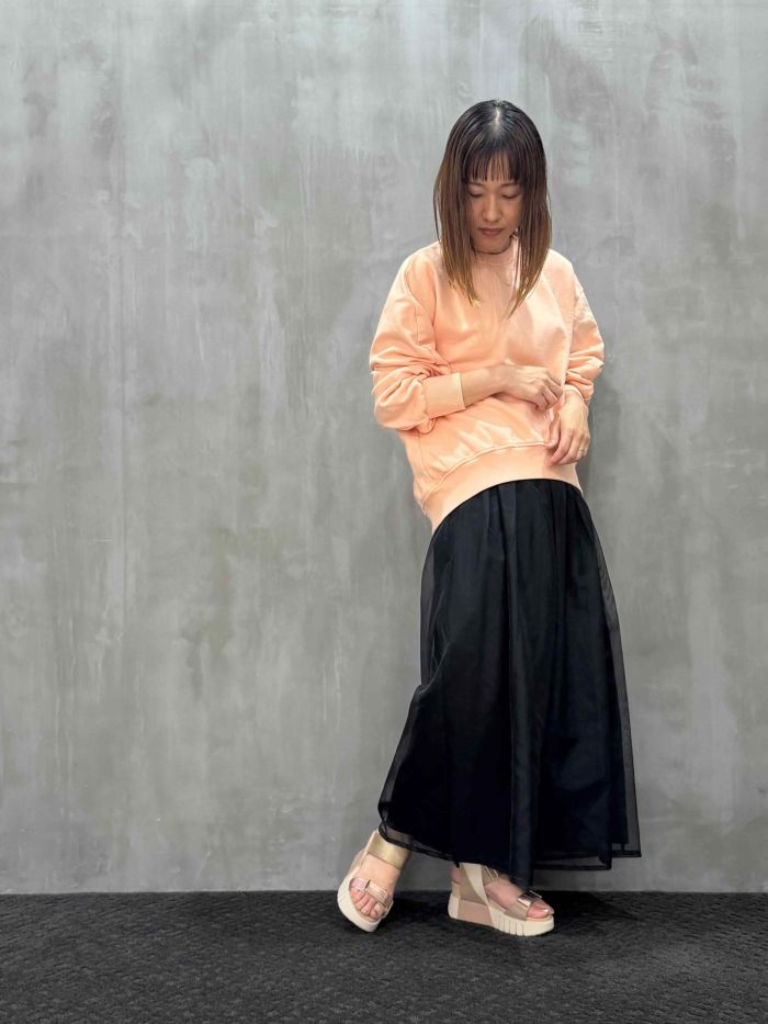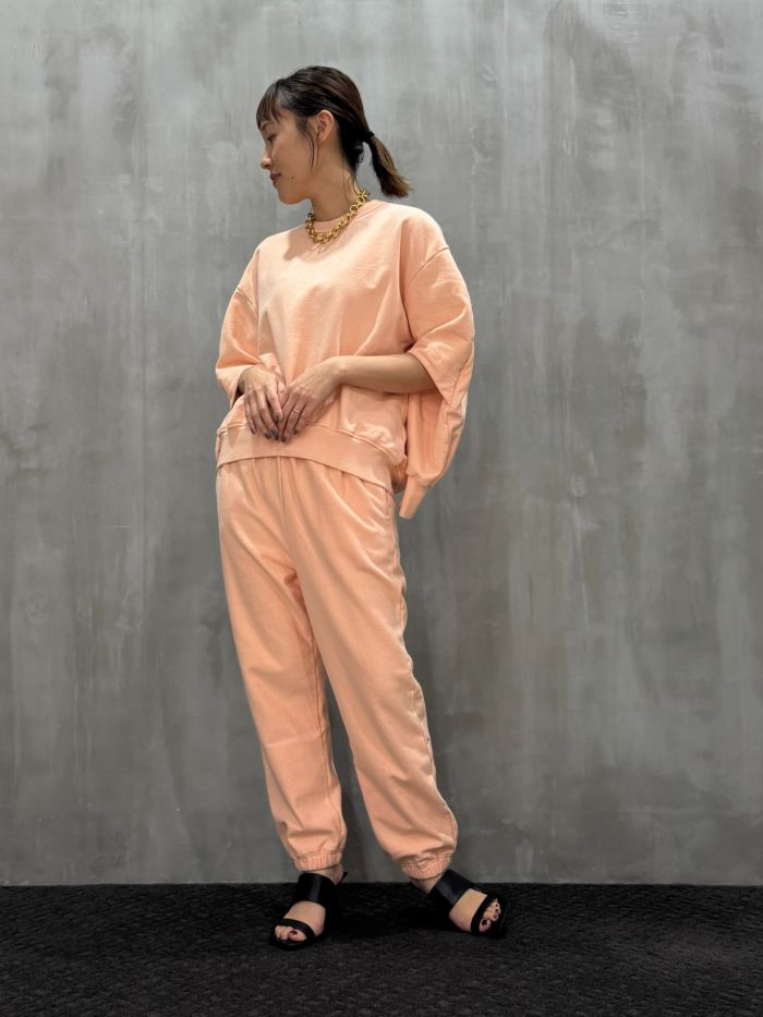 袖に丸みを持たせたスウェットトップス。シルエットにデザイン性を持たせているのでラフになりすぎません。セットアップコーディネートでは、一味違った大人のリラックスモードを楽しめます。