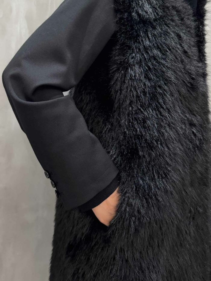 細めの身幅なので、ファーのボリュームがあってもすっきりとした見ためです。