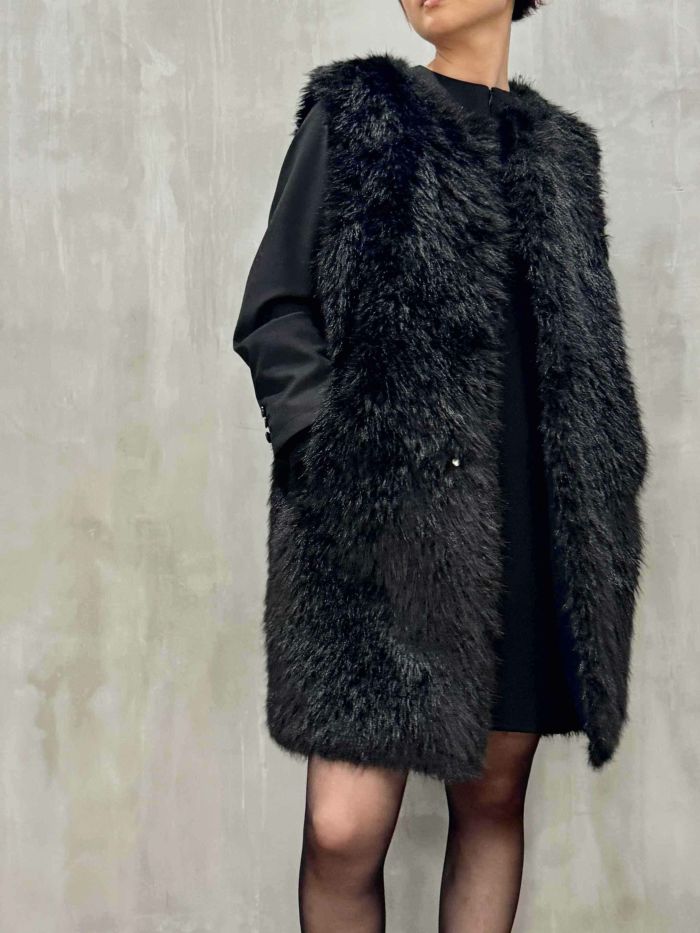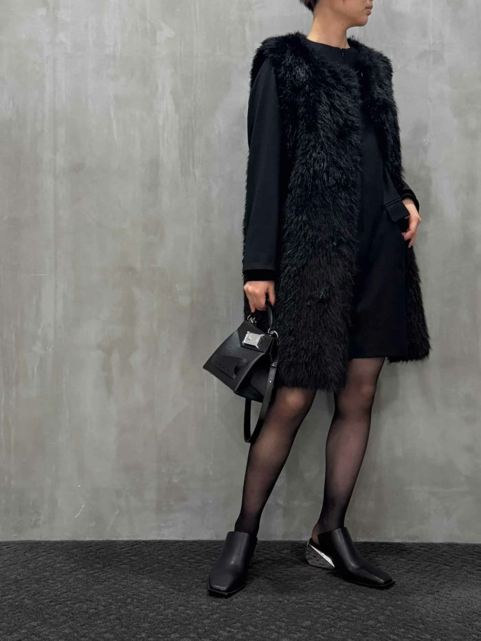 細めの身幅なので、ファーのボリュームがあってもすっきりとした見ためです。