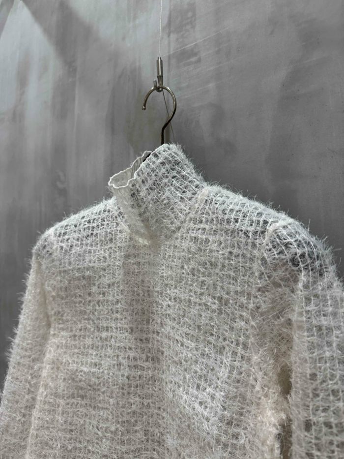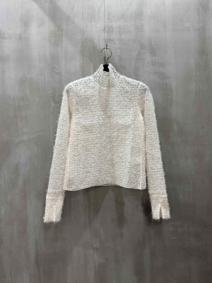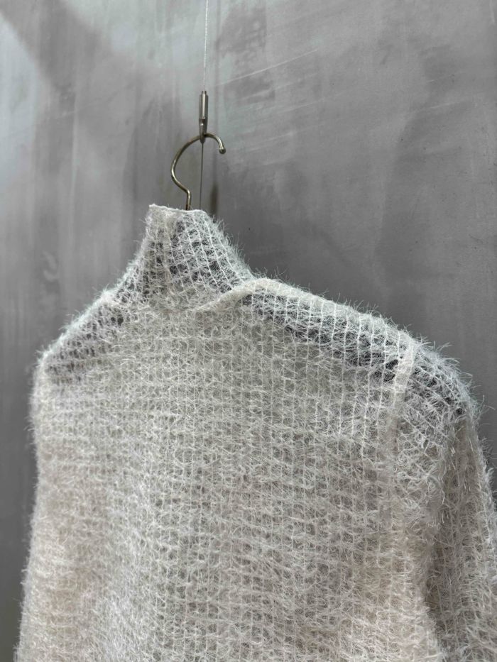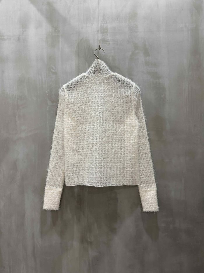 透け感と毛羽感の絶妙なバランスで魅せる、near.nipponの「シアーファーチュール ハイネックトップス」。韓国製の上質なラッセル刺繍チュール素材を使用し、インナーとしても一枚着としても活躍する着映えアイテムに仕上げました。