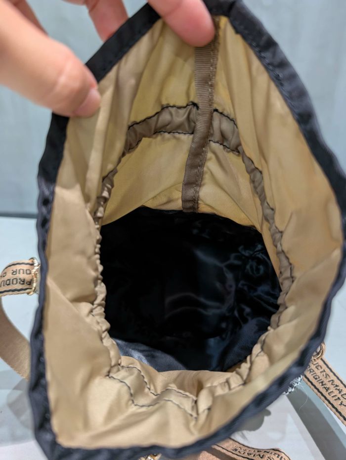 巾着仕様の開閉で中身をしっかりカバーしつつ、軽量で持ち運びやすいのも魅力。ショルダーや手持ちでバランスよく使える持ち手デザインで、デイリーからお出かけまで幅広く活躍します。内側には裏地を施しているため荷物を入れても安定感があり、見た目以上の収納力を発揮。