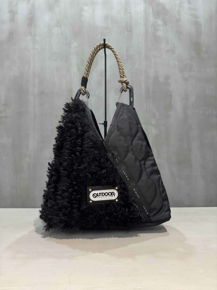 ファー部分と軽量で柔らかなキルティング素材を組み合わせ、見た目の可愛さだけでなく実用性も兼ね備えた仕上がり。内側には裏地を施し、小物の出し入れがスムーズ。ハンドル部分には合成皮革を使用し、高級感と耐久性をプラスしています。