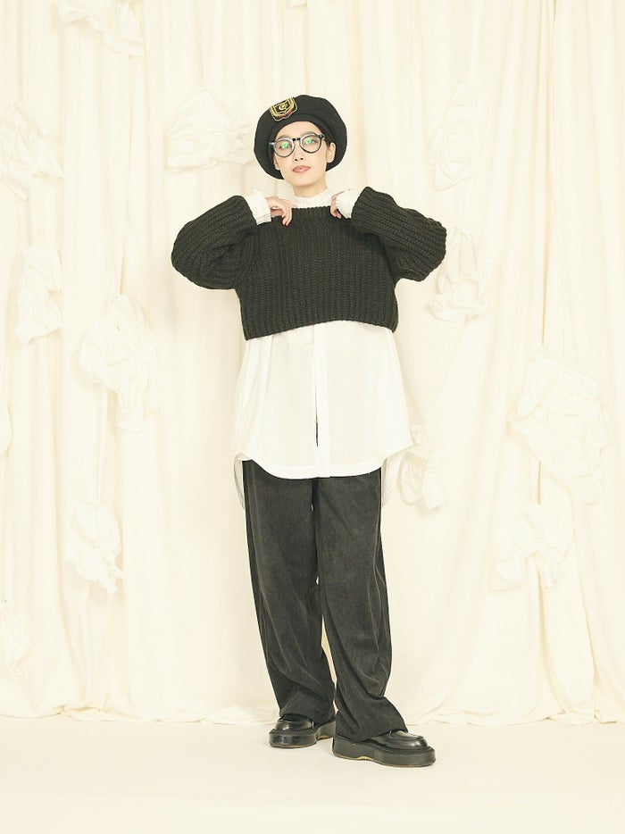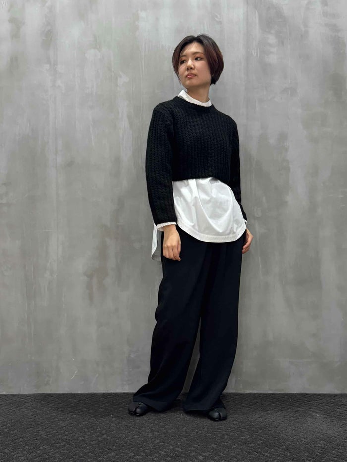 「大人が楽しめるショート丈」をテーマに、オーバーすぎず、でも今っぽいレイヤードスタイルを提案するニットです。