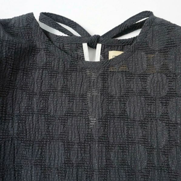 波打つシアサッカーのような生地なのでタッチ面が少なく涼しいのも特徴です。背中にウエーブのテープを付けています。後ろ姿が少しモードな雰囲気です。