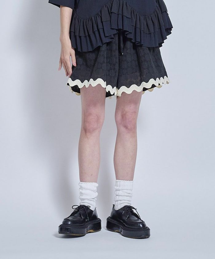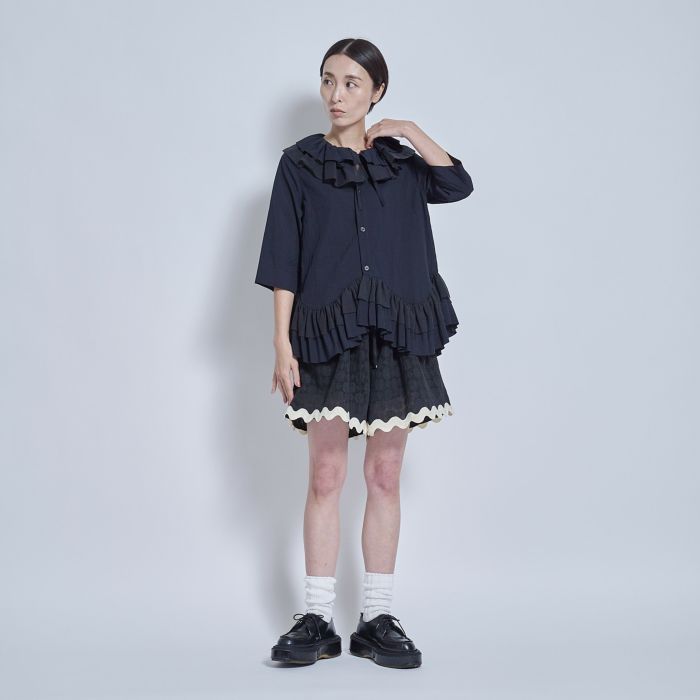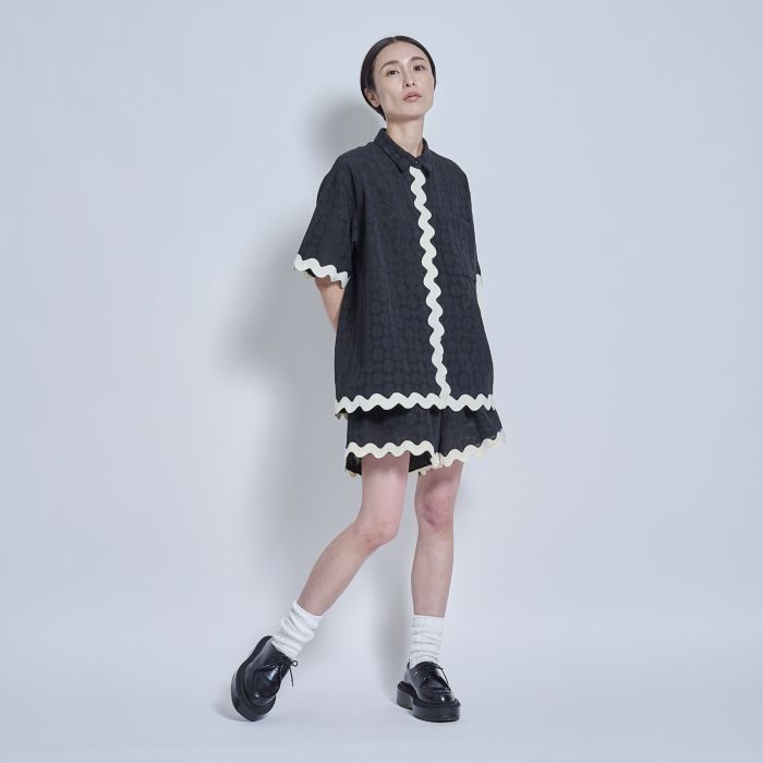 お勧めはブラックカラーでのシャツとのセットアップ。アイボリーはリトルドレスのアンダーパンツになり、ウエーブのテープが見えて非常に可愛かったです。