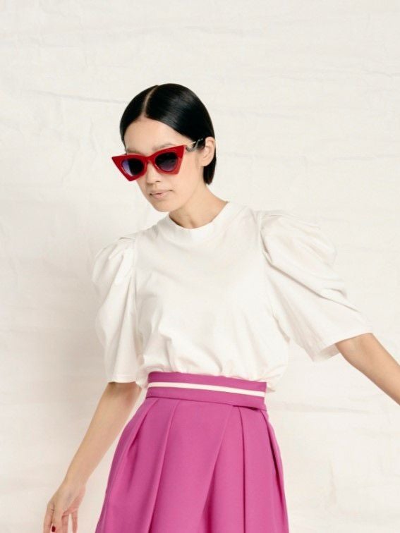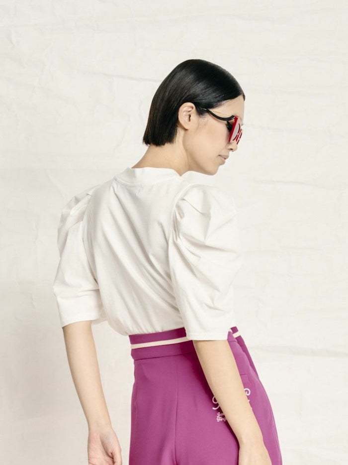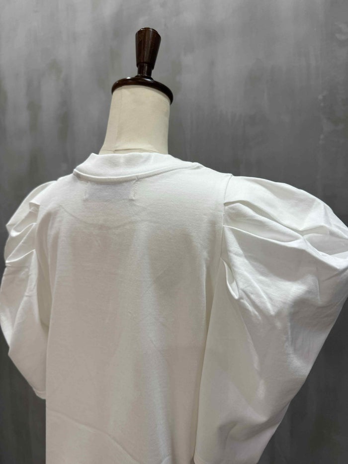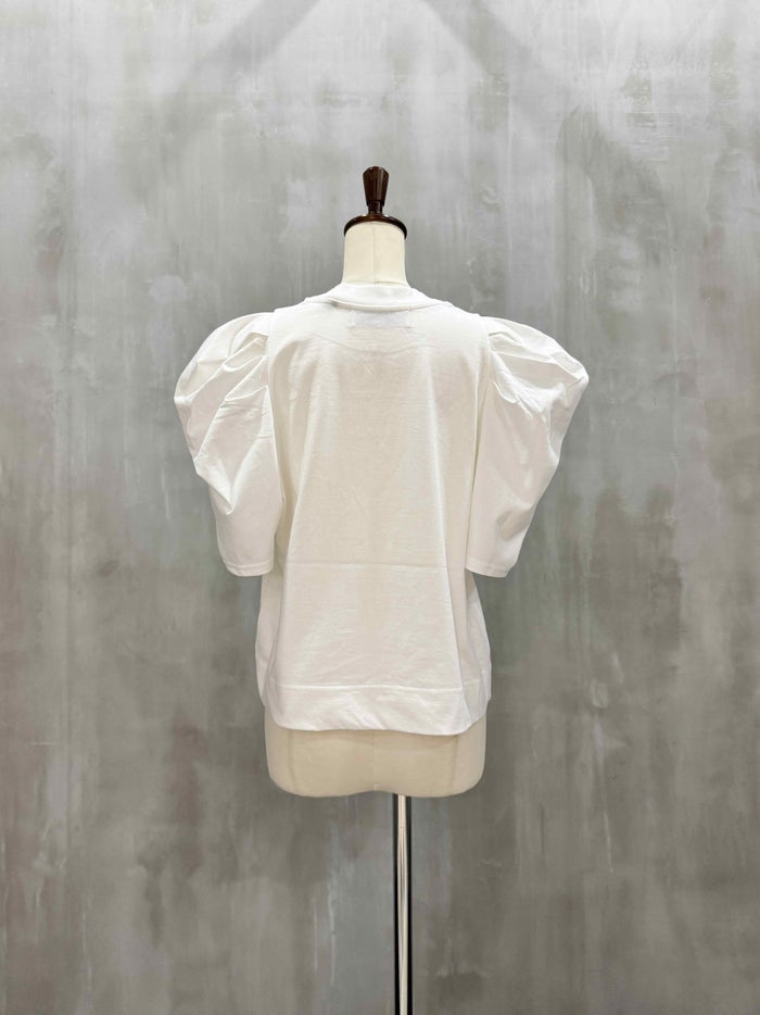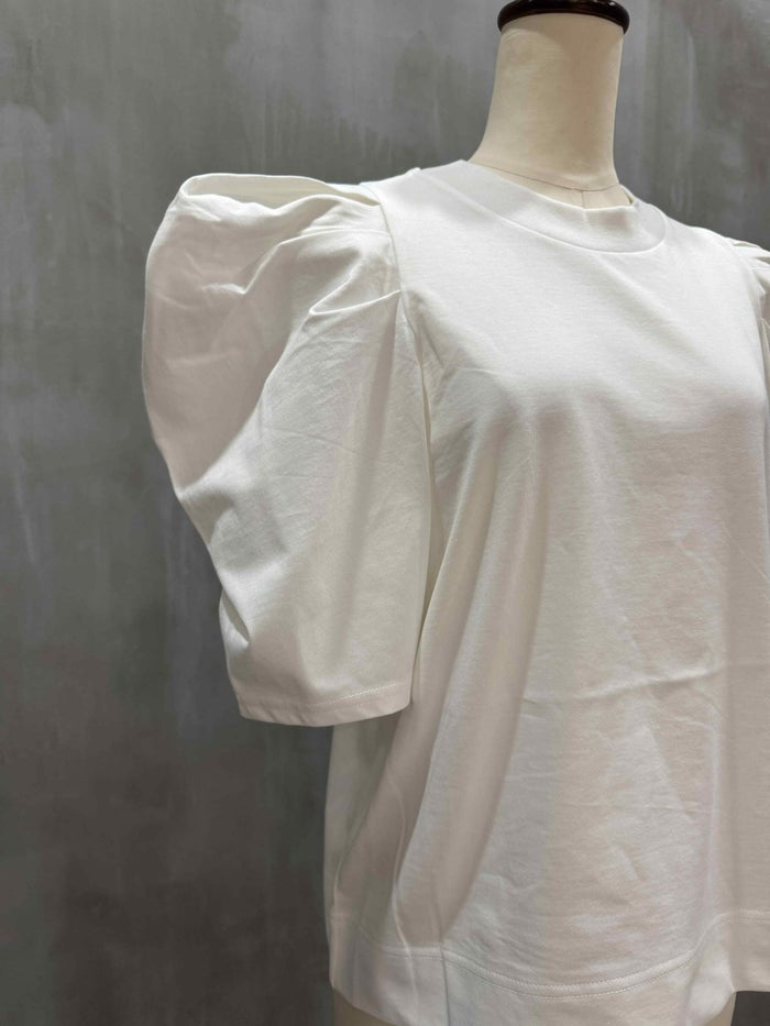 しなやかで上質感のある47/2コットン天竺を使用した、ギャザースリーブが印象的なTシャツです。