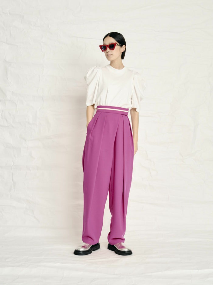 肩から袖にかけてたっぷりと入ったギャザーが、自然な立体感と女性らしい柔らかさを演出。