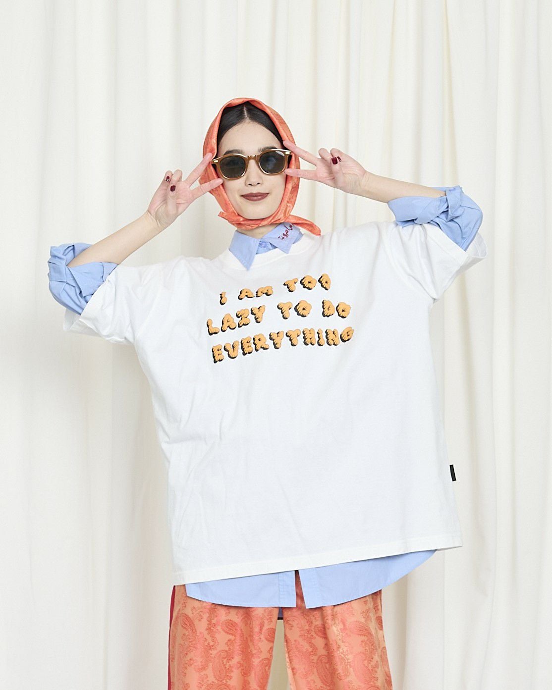 THOMAS MAGPIE(トーマスマグパイ) THOMAS MAGPIE(トーマスマグパイ)|30/2 Cotton Plain PRINT BIG Tshirt 『though we have hay fever』|2241859