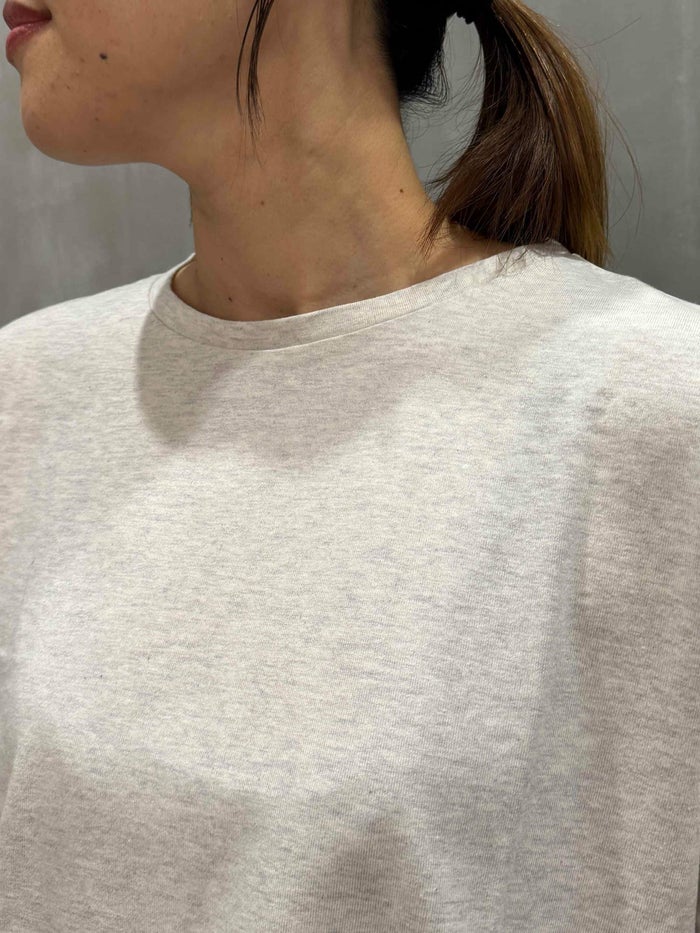 生地にはコットン100%のクラシック天竺素材を使用。膨らみのあるしっかりとした風合いながらも、やわらかな肌触りで着心地抜群。シンプルながらも計算されたフォルムで、1枚でもサマになる大人のカジュアルトップスです。