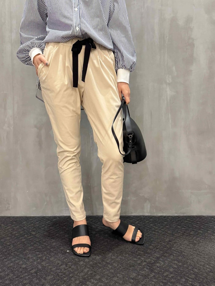 trois ハイテンションストレッチリボンテーパードパンツ