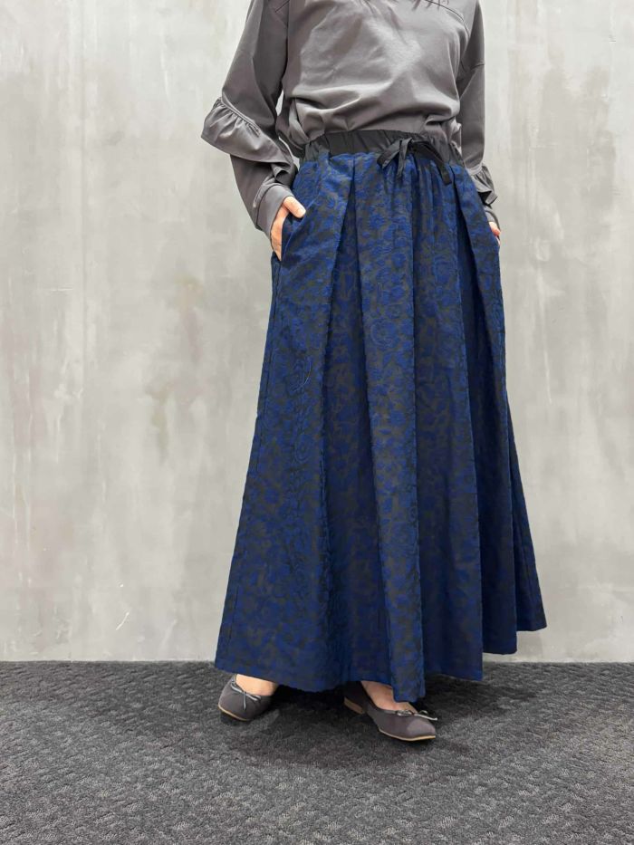 ふんわり広がるギャザーシルエットが女性らしさを演出し、コンパクトなトップスと合わせて着ていただくとコーディネートが華やぎます。