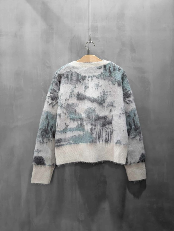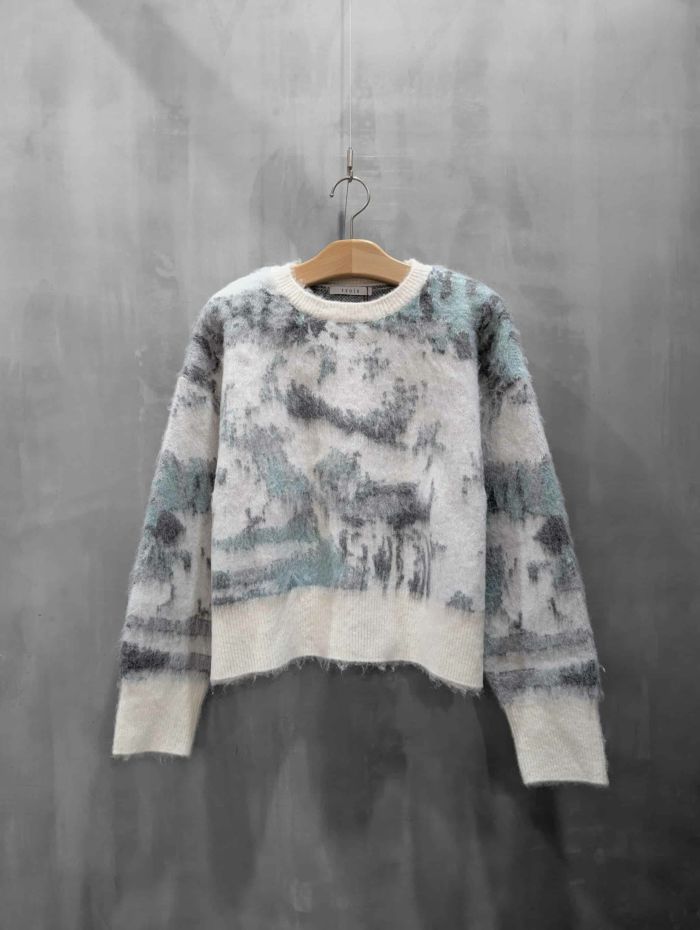 柄を主張しすぎないニュアンス柄のシャギープルオーバーニット。表面に長めの毛足を持つシャギー素材を使用しており、見た目もあたたかく肌触りも柔らか。ニュアンス感のある柄は主張しすぎず、コーディネートにさりげない奥行きをプラスしてくれます。ゆったりとしたショート丈のバランスがボトムを選ばず合わせやすいのもポイントです。
