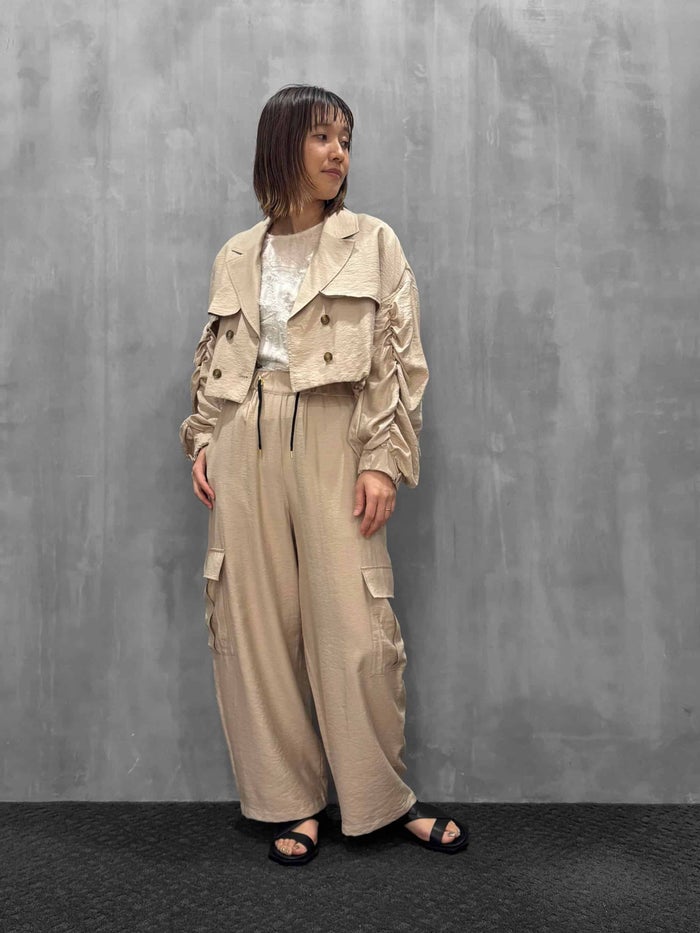落ち感のあるワッシャーデシンを使用したショートトレンチ。