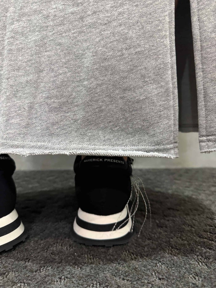 trois シフォンフリンジレース×裏毛 サイド切替ロングスカート