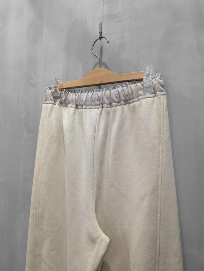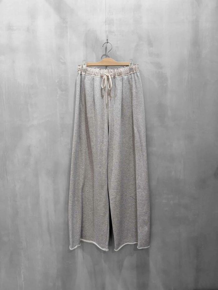 国内で丁寧に編み上げた裏毛素材を使用した、trois(トロワ)のカーブパンツ。柔らかさと膨らみのある生地は肌当たりが良く、リラックス感のある着心地が魅力です。程よいゆとりを持たせたカーブシルエットは体型を拾いにくく、動きやすさとこなれ感を両立。裾を断ち切り仕様にすることで自然なカーリングが生まれ、シンプルな中に抜け感をプラスしています。