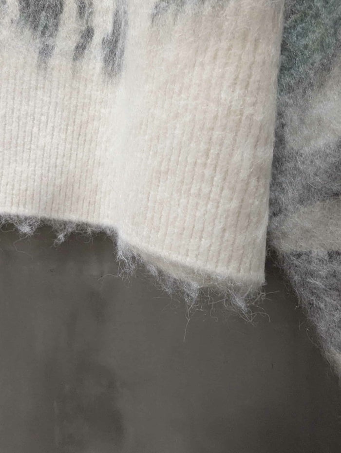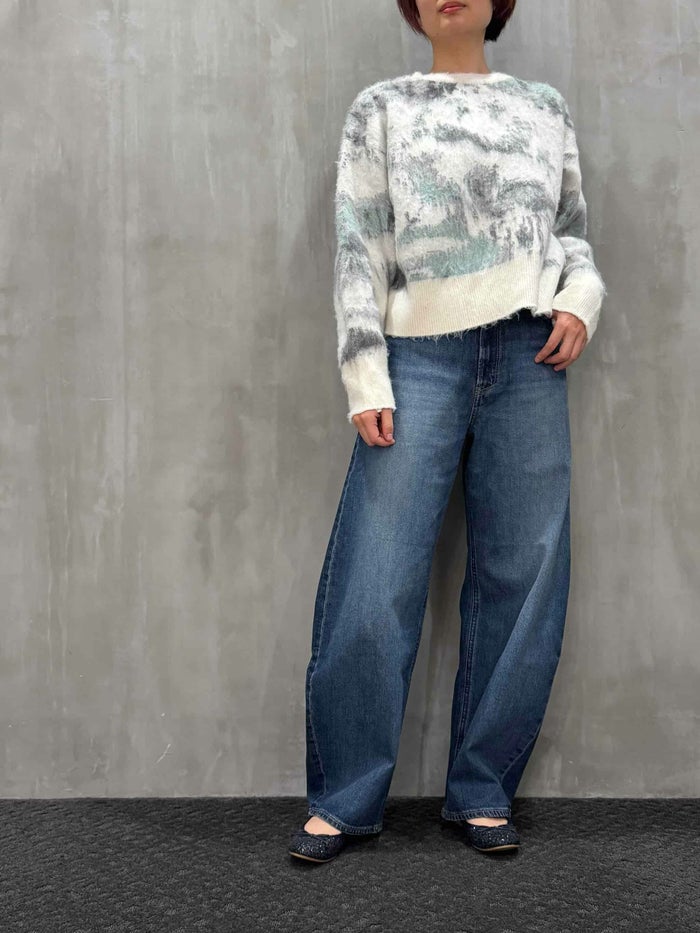 柄を主張しすぎないニュアンス柄のシャギープルオーバーニット。表面に長めの毛足を持つシャギー素材を使用しており、見た目もあたたかく肌触りも柔らか。ニュアンス感のある柄は主張しすぎず、コーディネートにさりげない奥行きをプラスしてくれます。ゆったりとしたショート丈のバランスがボトムを選ばず合わせやすいのもポイントです。