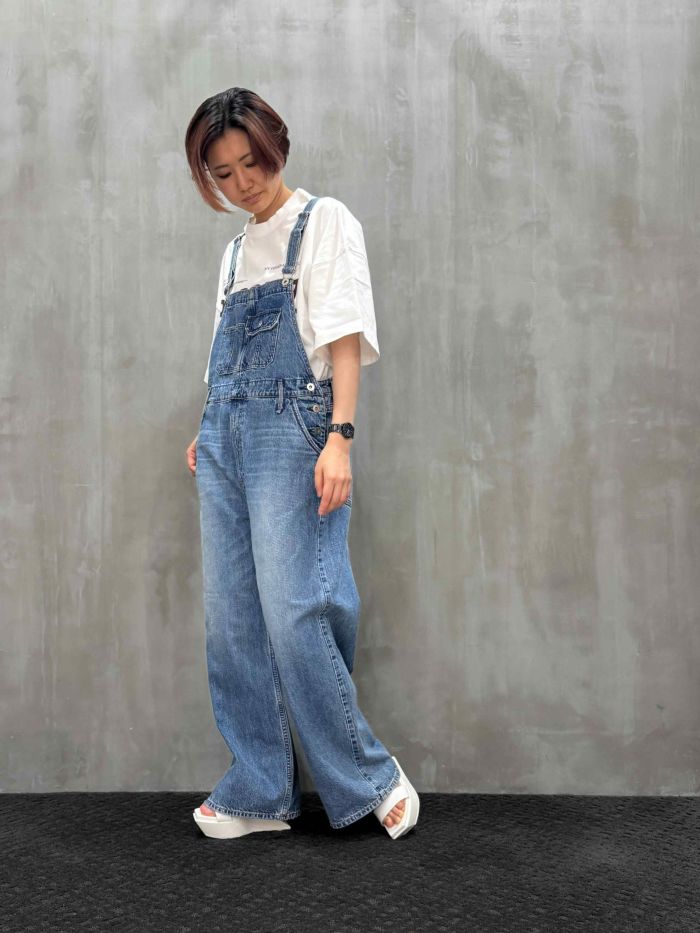 腰から下は太く落ち、上半身は華奢に見えるよう肩ひもを細くするなど、こだわりの詰まったサロペット。25PFシーズンよりオリジナル生地がアップデート。より自然なヴィンテージ感の出る生地を目指し開発を重ね、古着らしいシボ感とタテ落ち感を表現できるようになりました。