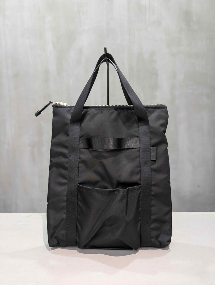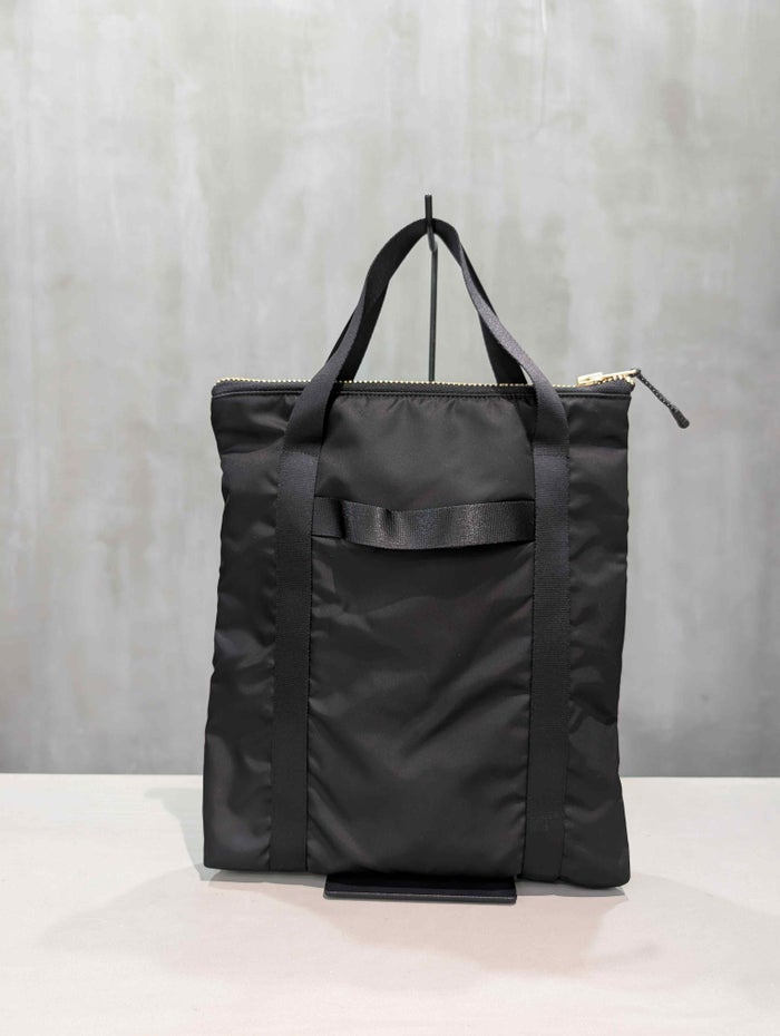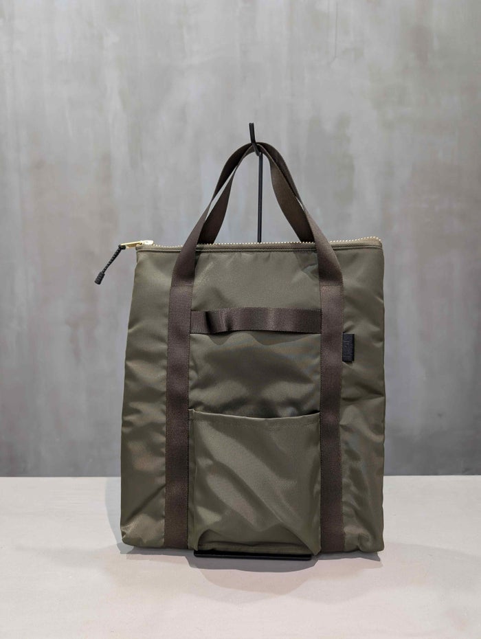 1stモデルのヘルメットバッグをイメージしながらデザインした、ミリタリーテイストのPC & etc トートバッグ。エルメス、グッチ、プラダなど名だたるブランドが採用するLIMONTA社製の高品質ナイロンを使用し、日常使いに最適なタフさと上品さを兼ね備えた仕上がりになっています。