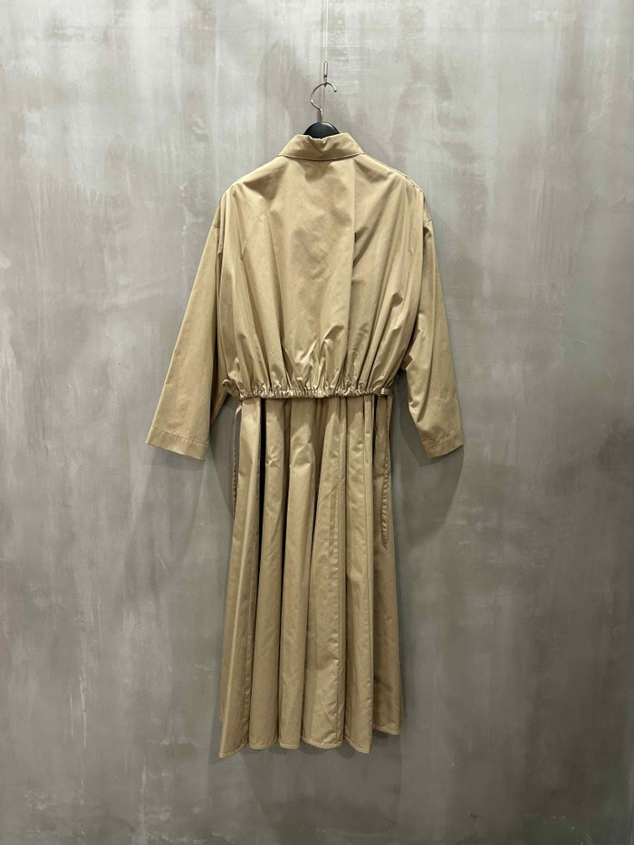 裾にはアウター側のコードが施されており、シルエットの変化も楽しめる仕様に。ドレスのような上品な仕立てと、細やかな機能美を両立させた、特別な一着です。