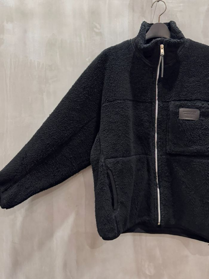 ボア素材の常識を覆す、構築的なフォルムと奥行きある色合いが魅力のジップアップブルゾン。