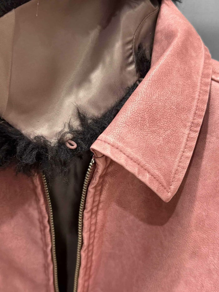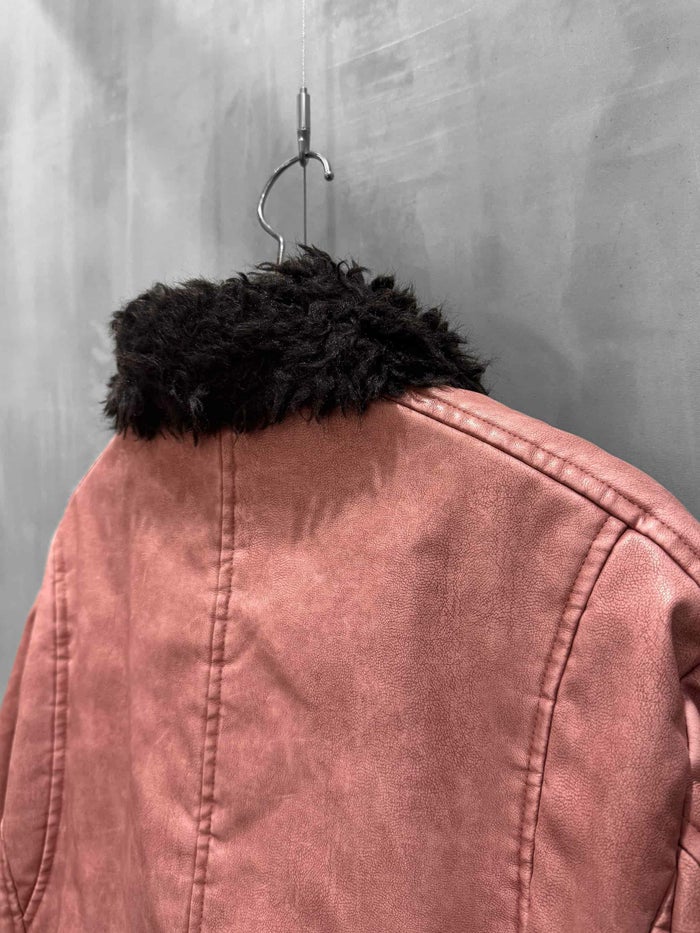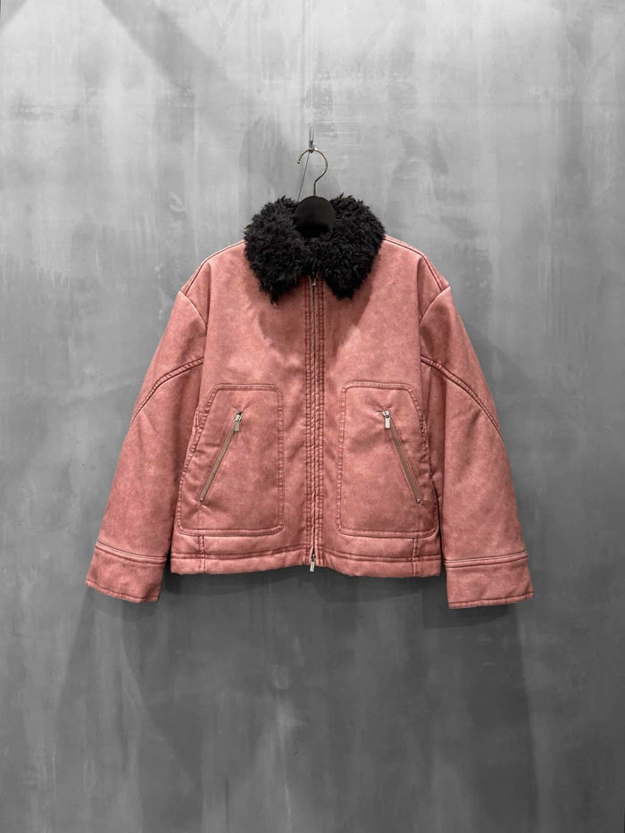 ・フェイクレザーのクールな質感に、エイジング加工を施したシーズンムード高まるジャケット。