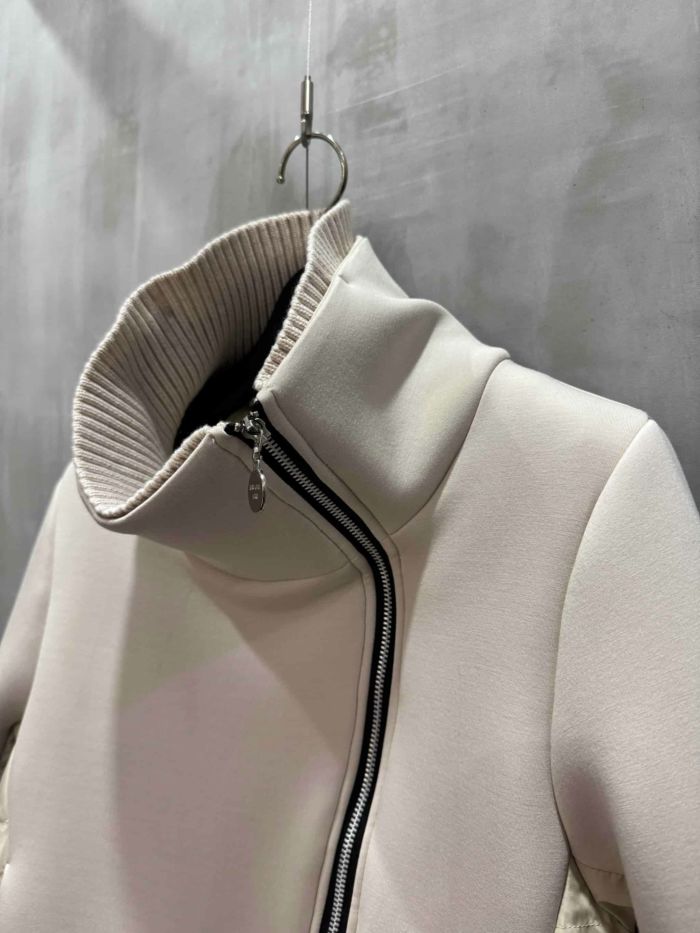 袖はダンボールニットとダウンの切替で、内側にダンボールニットがくることで細見え効果も期待できます。