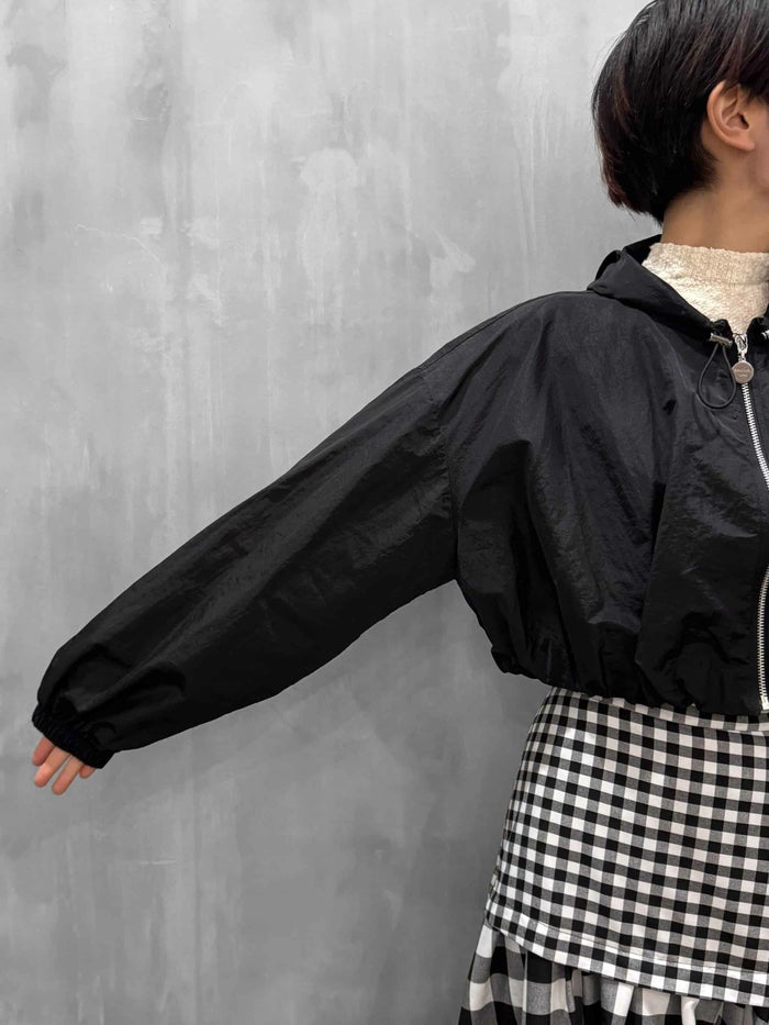 軽量ナイロンを使用したフーディと、レイヤード風に着こなせるナイロンベストのセットブルゾン。