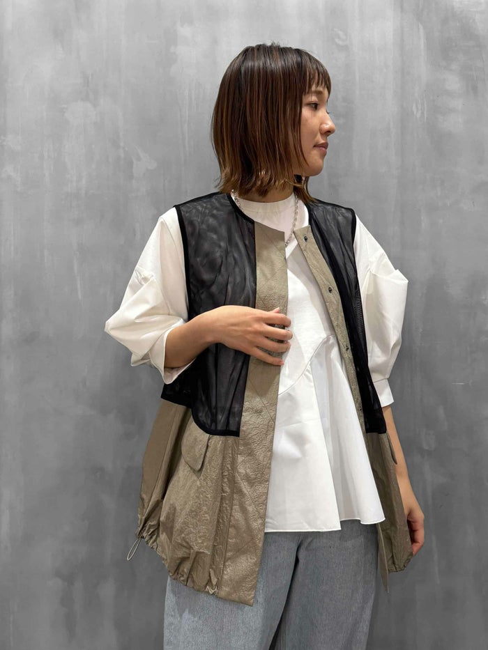 ■ベスト裾はドロスト仕様でシルエットの変化を楽しめます