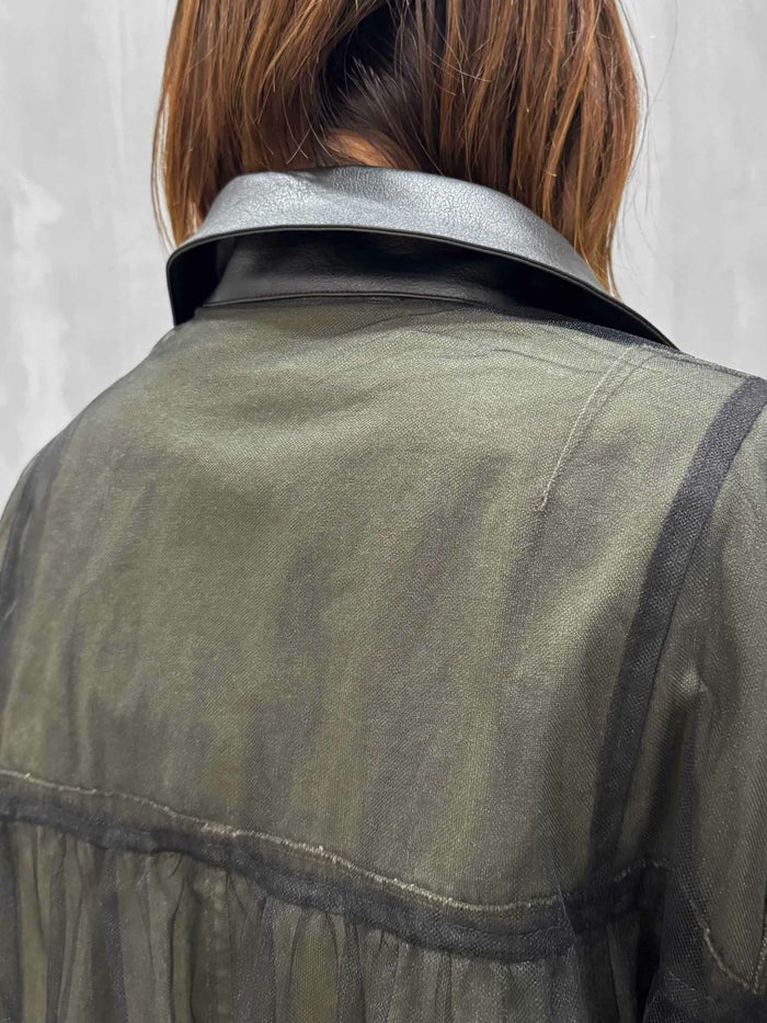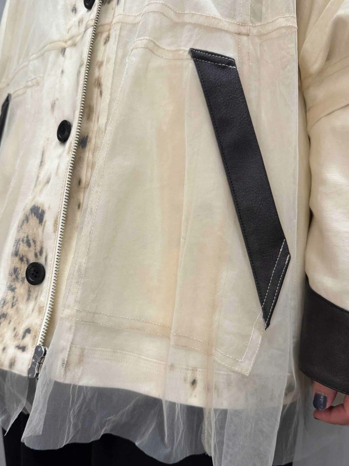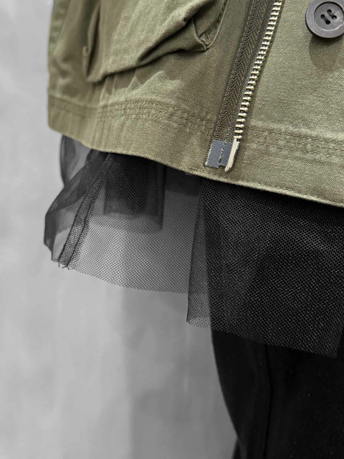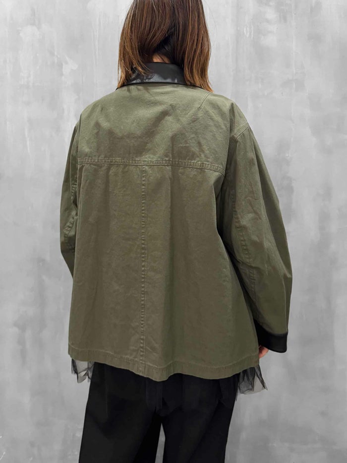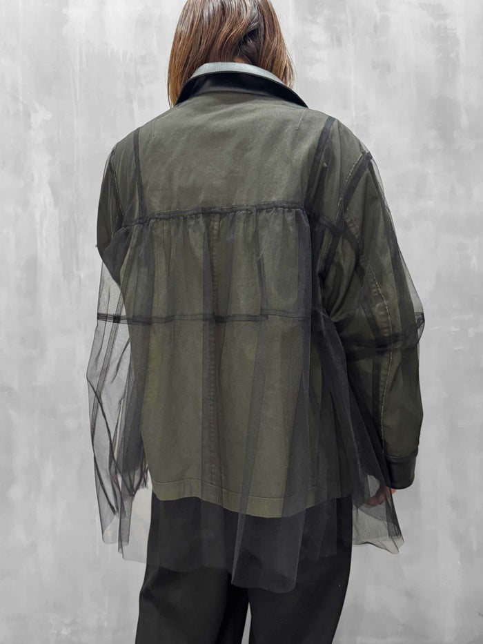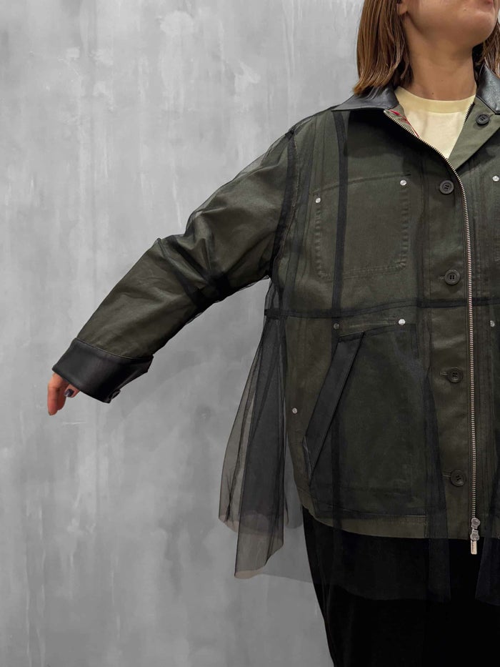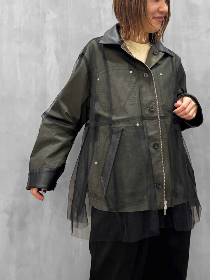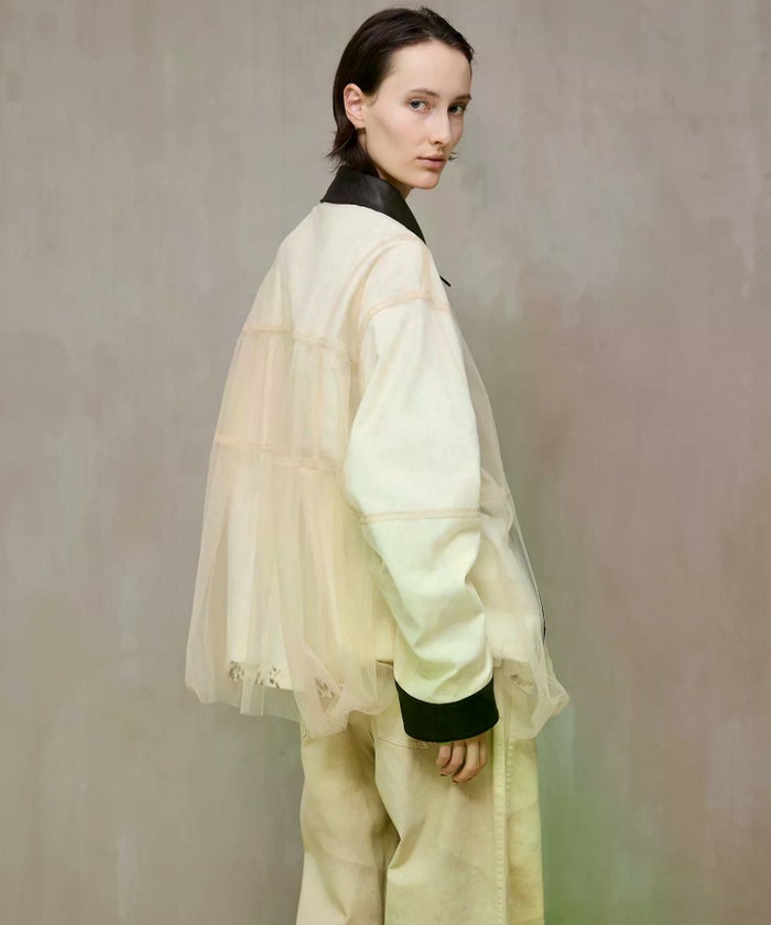 チュール素材を取り入れた面とカジュアルなコットン素材を楽しめるリバーシブル仕様のジャケット。