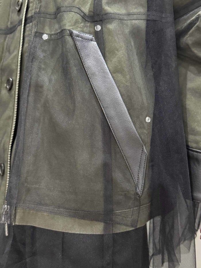チュール面を表にすればフェミニンな雰囲気に、反対にすればミリタリーライクなカジュアルスタイルに。