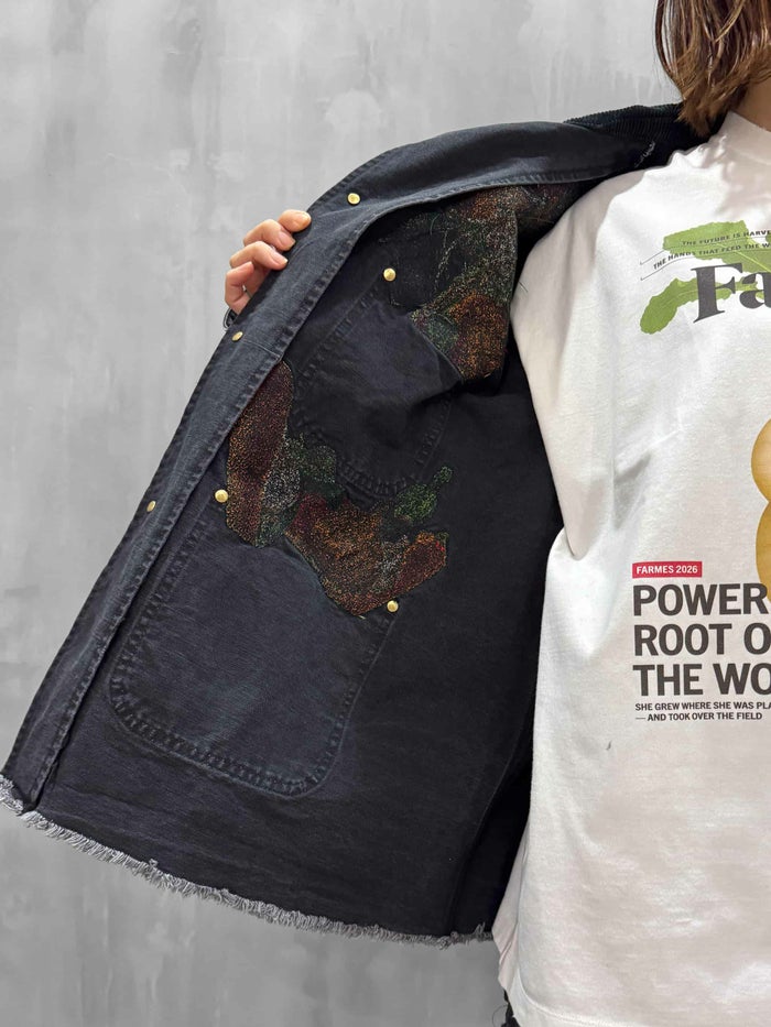 WE CAN ONLY LIVE BECAUSE THERE ARE PEOPLE WHO TILL THE EARTH, SOW SEEDS, AND NURTURE VEGETABLES WITH CARE. THIS JACKET PACKS THAT TIME AND EFFORT INTO ITS POCKETS—A SMALL WAY TO WEAR OUR GRATITUDE, LIKE SAYING “ITADAKIMASU” WITH EVERYDAY CLOTHING.