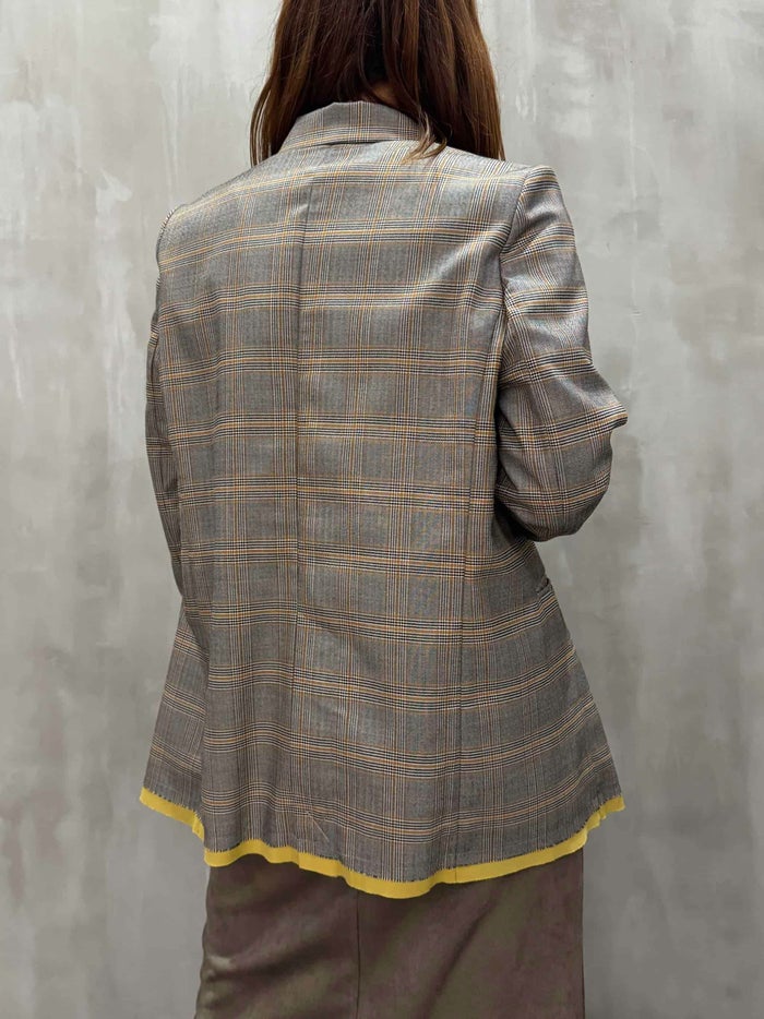 HERENCIA バイカラーカットオフチェックジャケット
