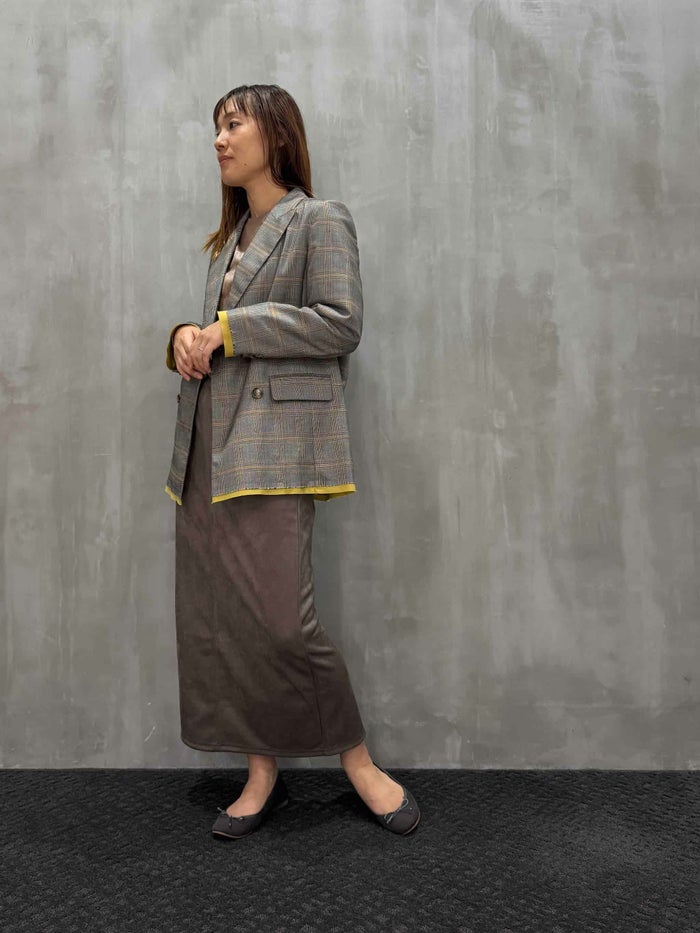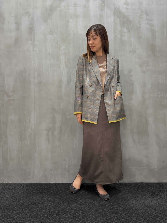 ・メンズっぽいダブルジャケットでトレンド感を演出。