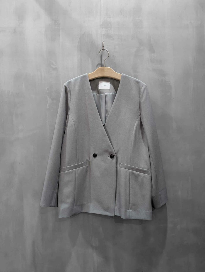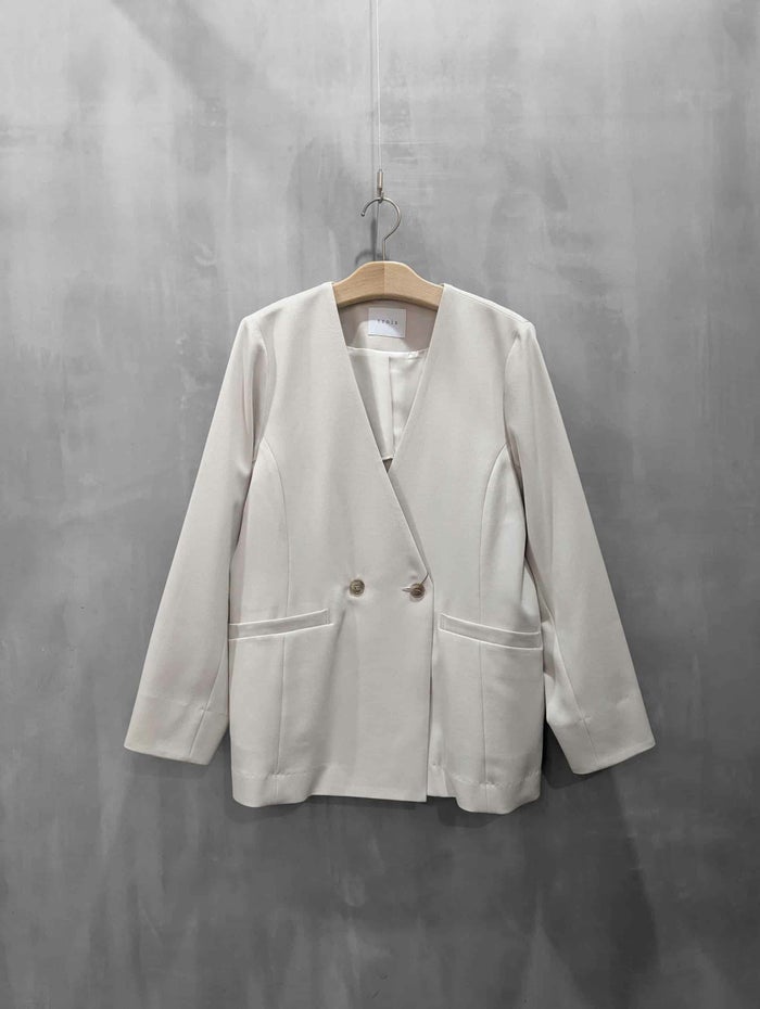 trois ソフィーツイルストレッチノーカラージャケット