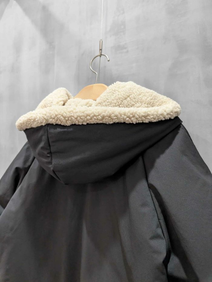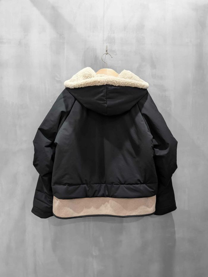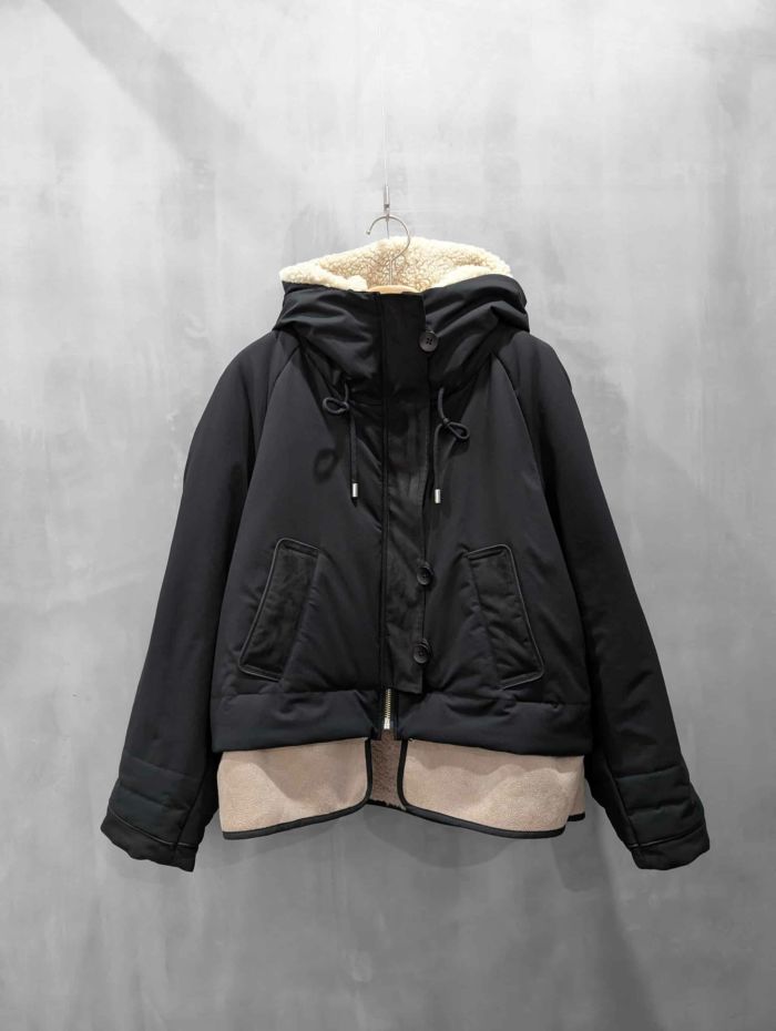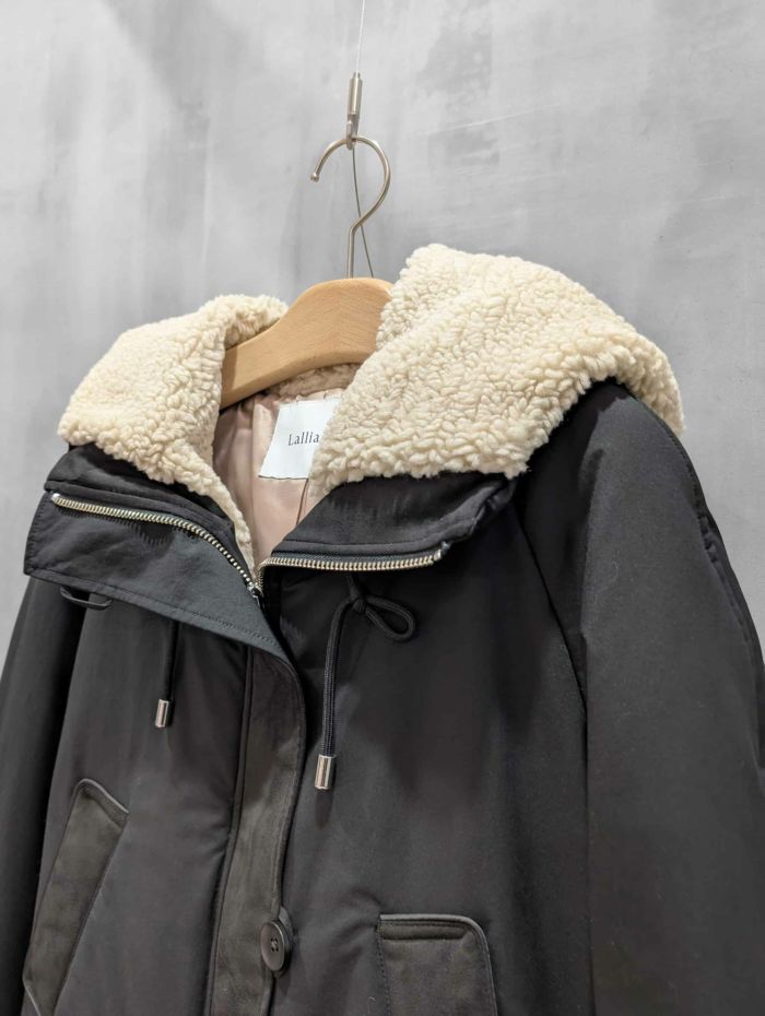 裾にバイカラースエードをドッキングしたアイコニックなデザインのラリアムーらしいフードコート。